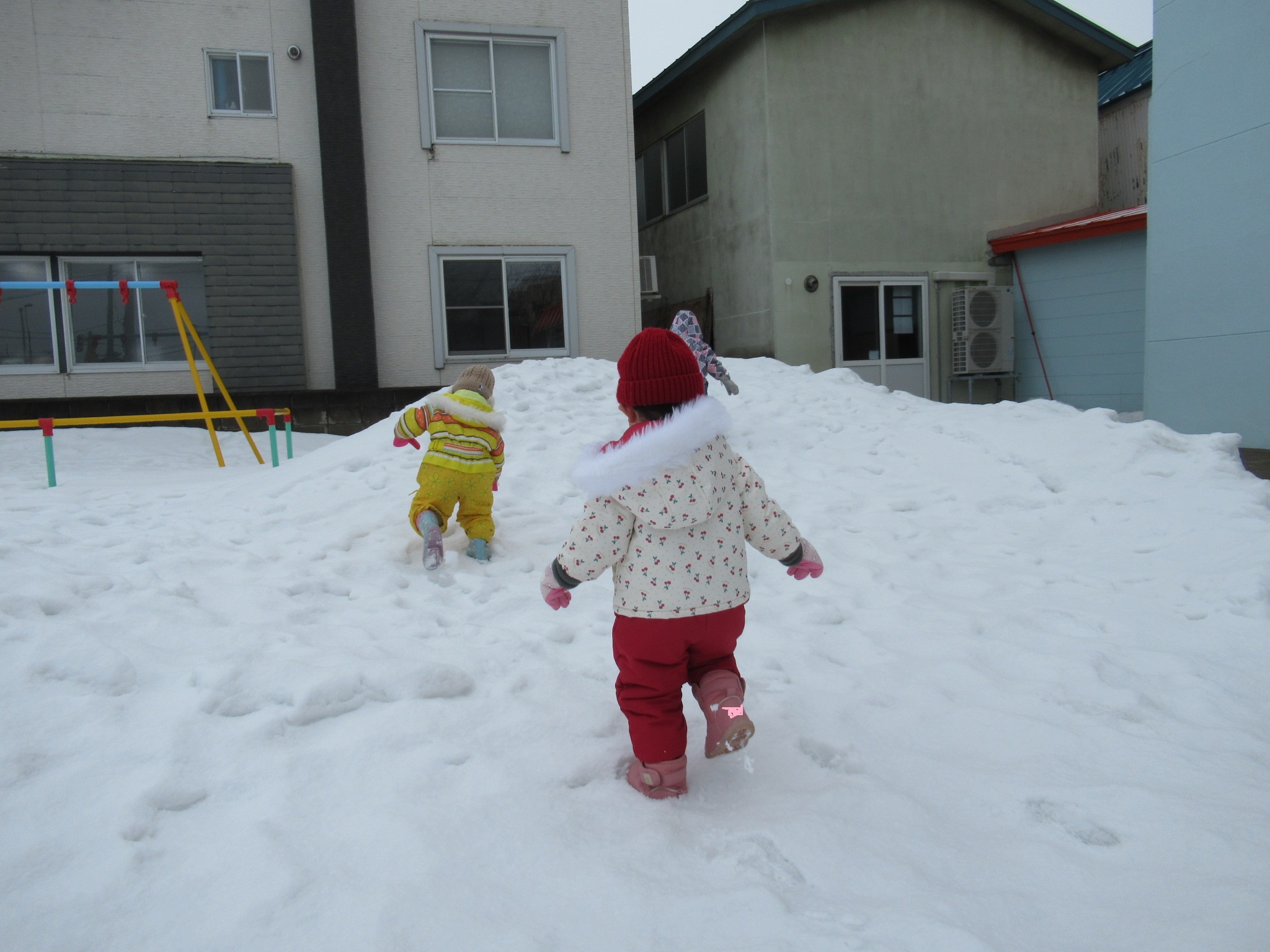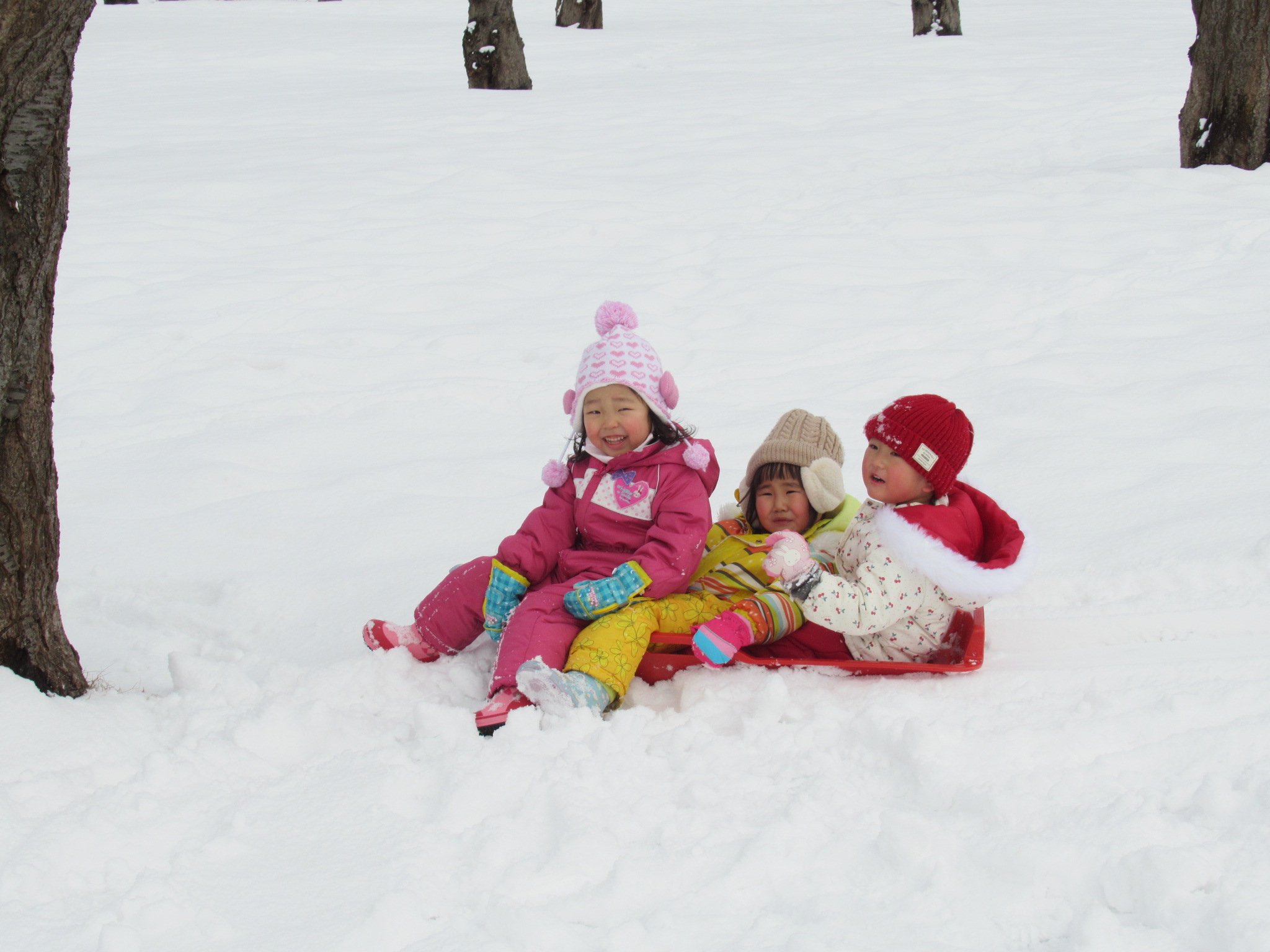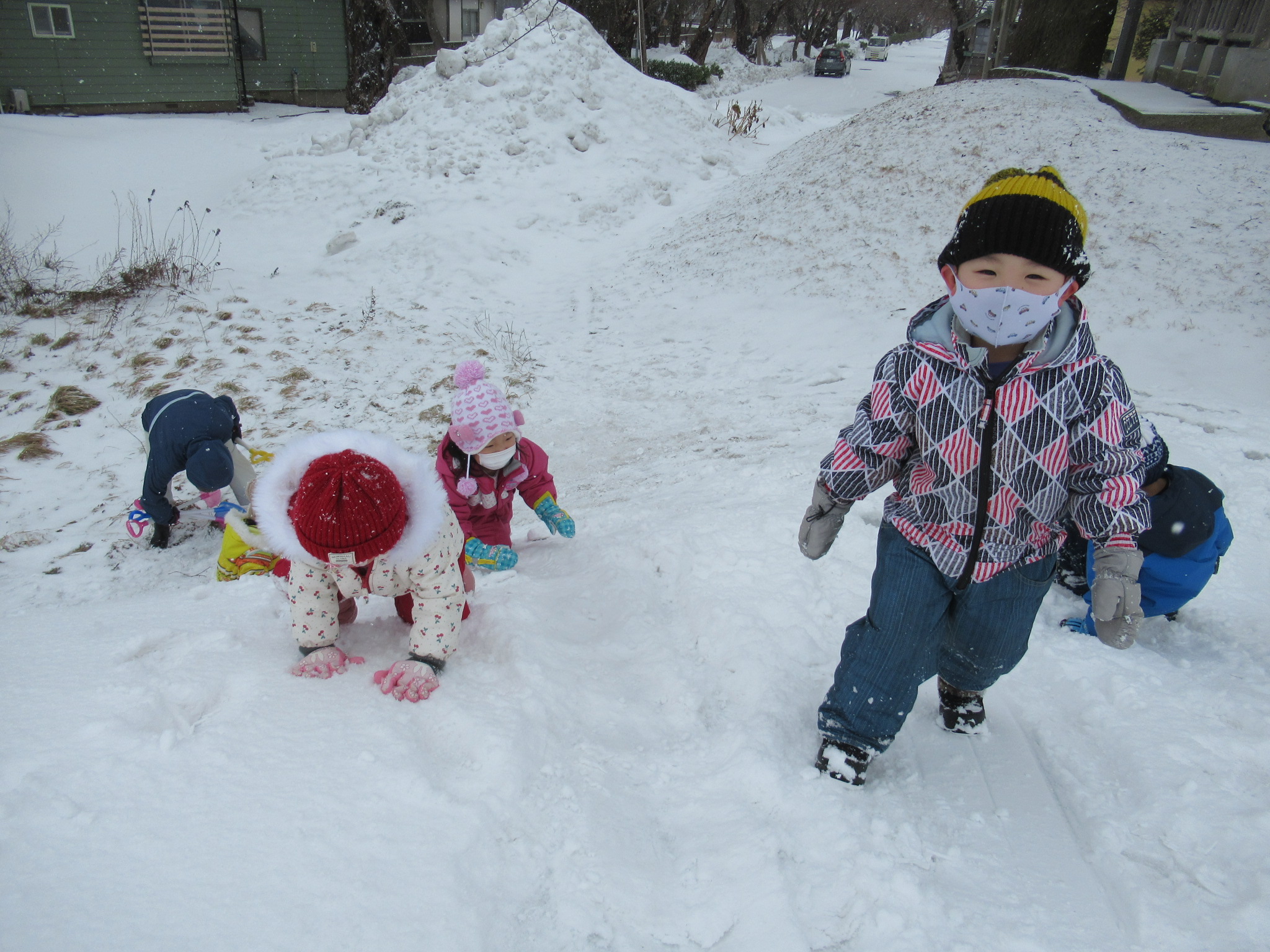 いろんな雪の感触を体で感じたり冬の澄んだ空を見上げたりもして冬の遊びを満喫しています。