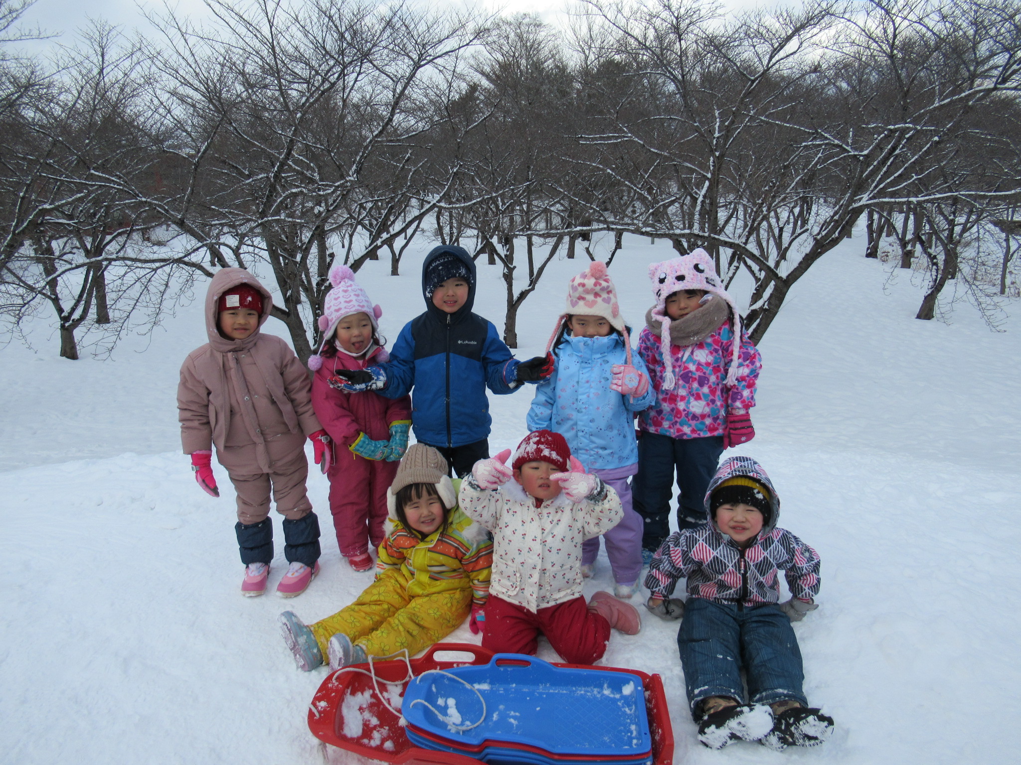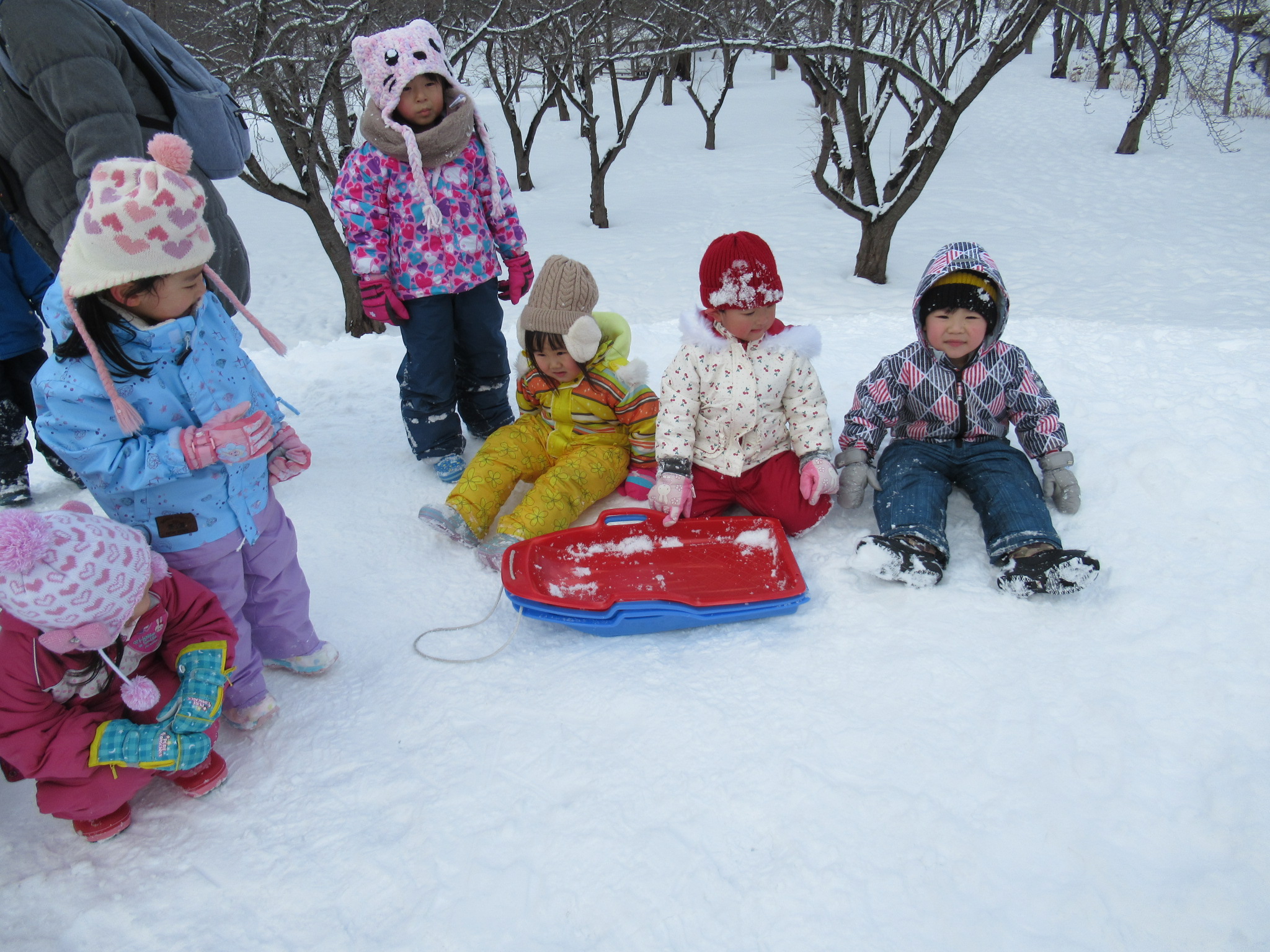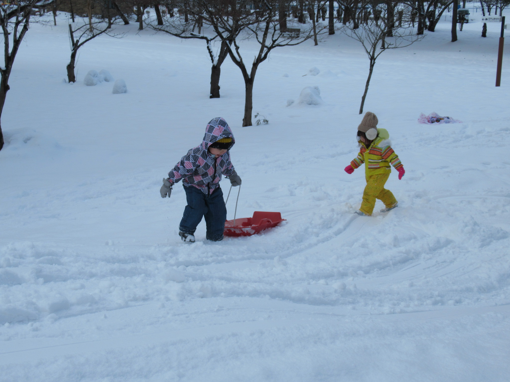 菊ヶ丘公園の山でそり滑り、ゴロゴロごっこをしたり