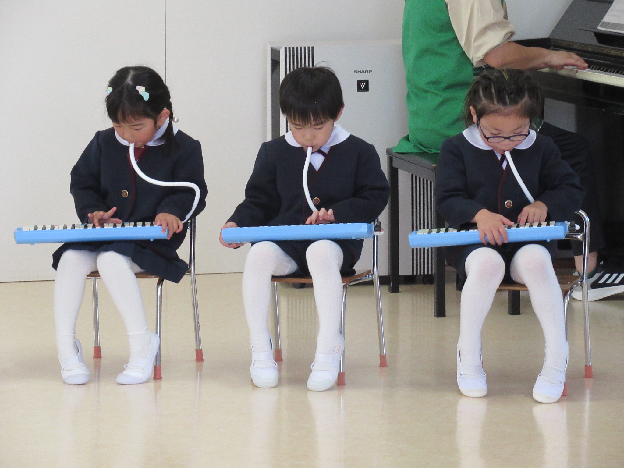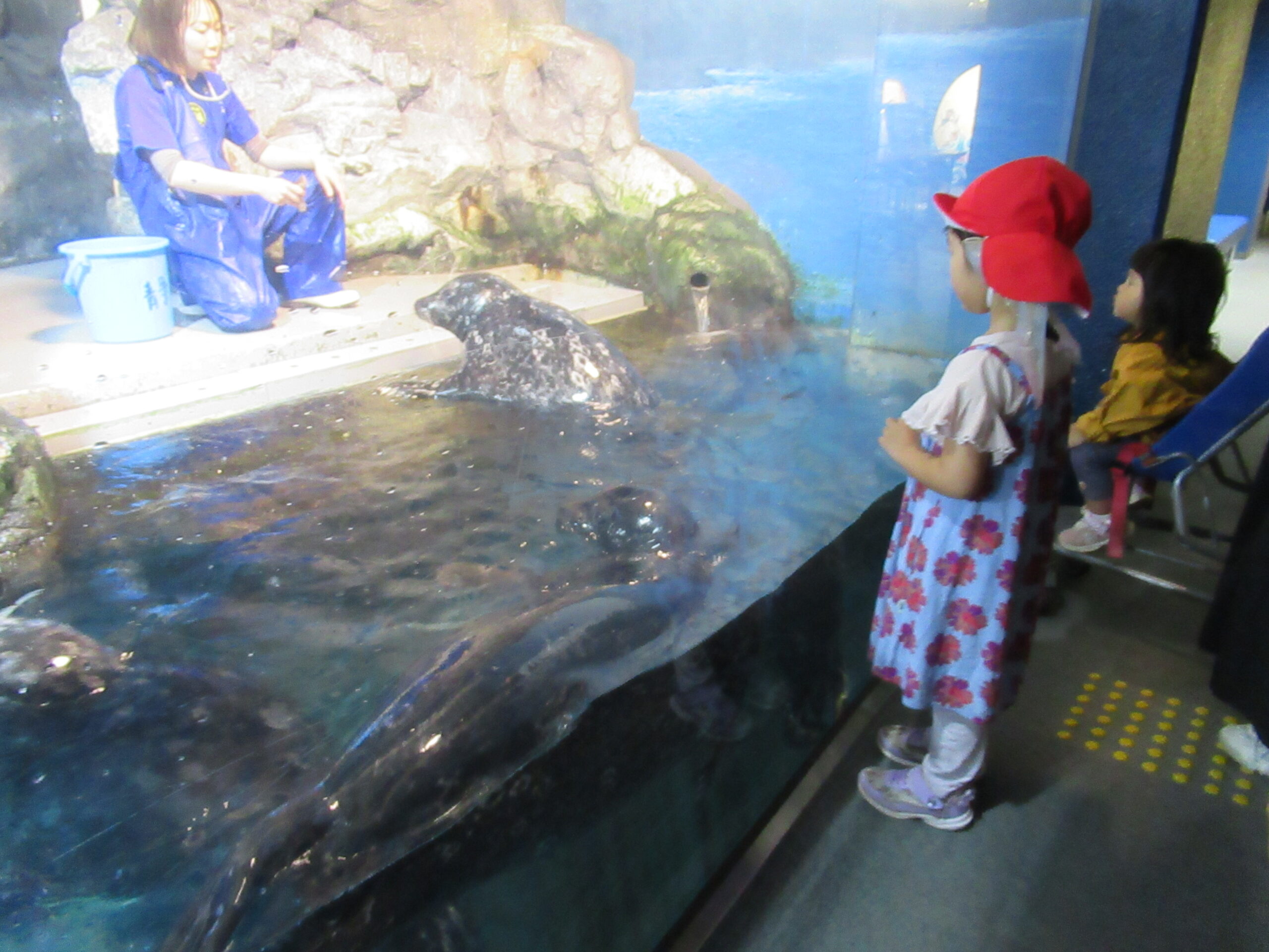 親子遠足と誕生会楽しかったね! 親子遠足は水族館に行きました。 イルカショーも楽しかったけど、いろいろな魚を見たり アザラシの餌やりを見ることができて、とても楽しかったね! 誕生会の様子です。 みんなで「かえるのうた」をピアニカで演奏しました。 ピアニカを弾くのが好きで、練習も楽しく取り組んでいました。 次はどんな曲を弾けるようになりたいかな?