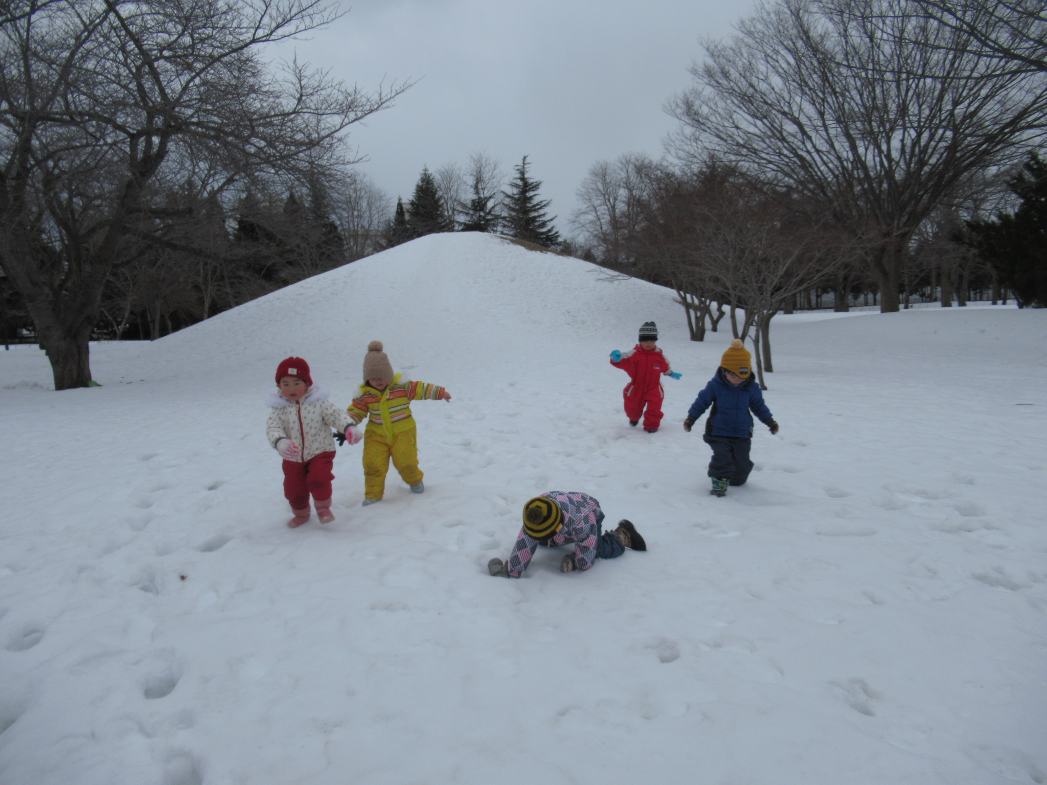 雪遊びが大好きな子どもたちは、時間を忘れてそり遊びや雪の穴掘りを楽しみました。