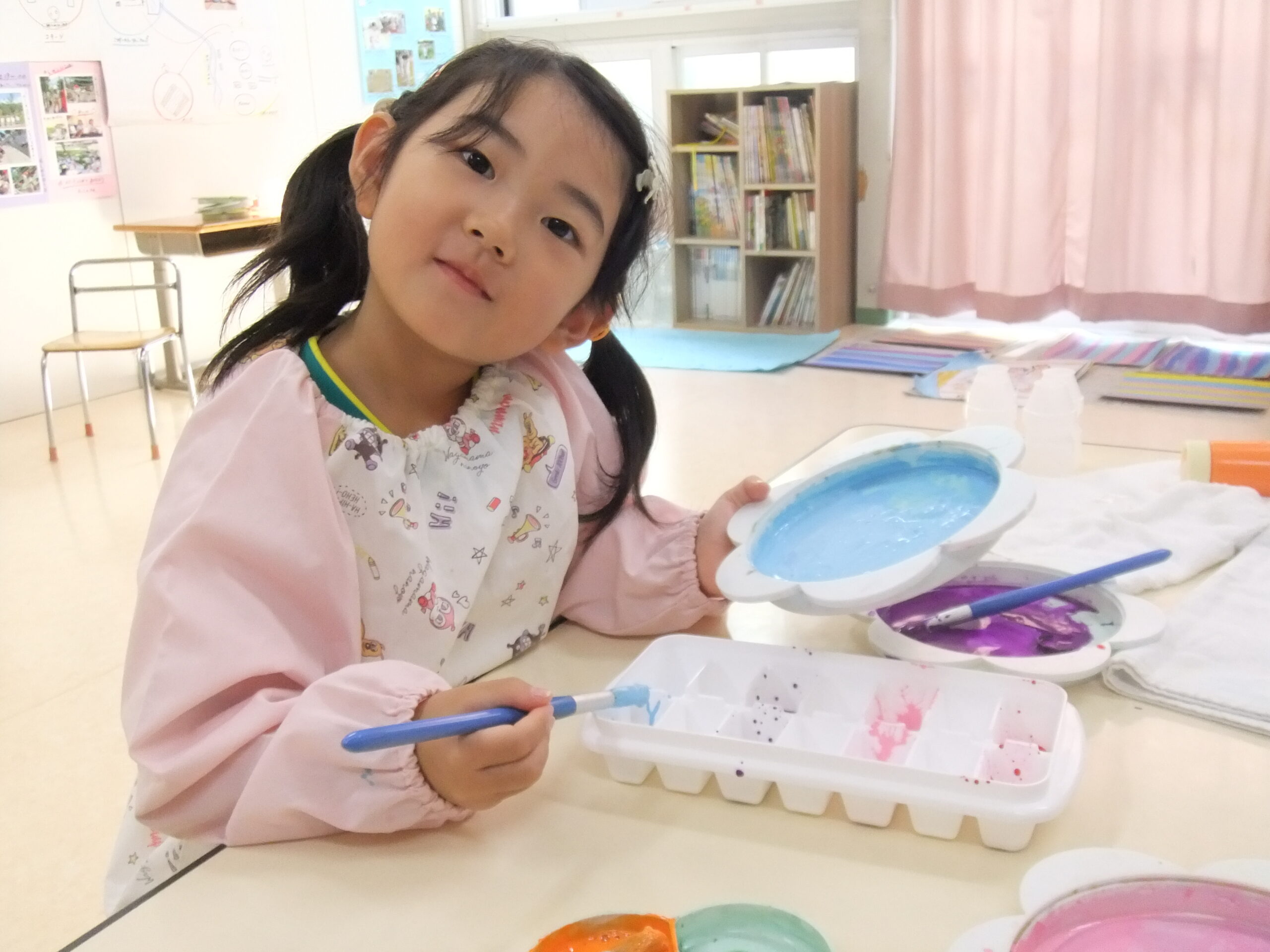 氷でクレヨンを作りお絵描きをしました。