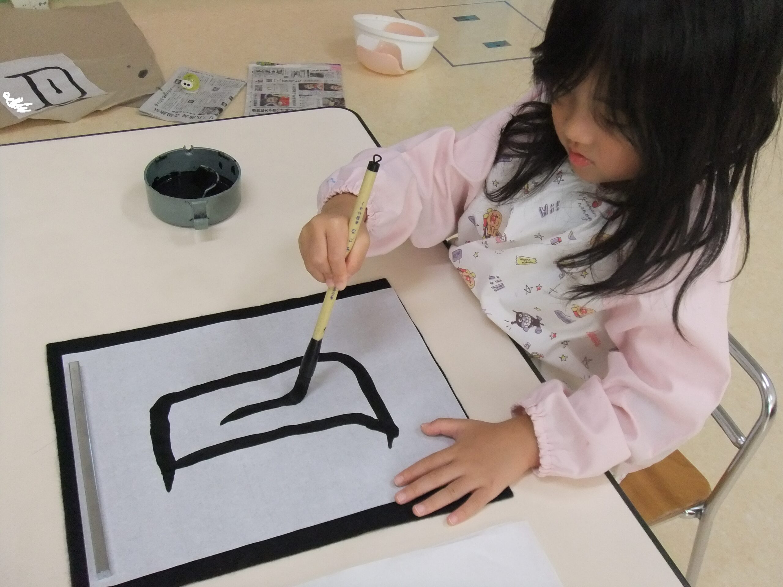 習字の筆で線のお稽古をしました。
