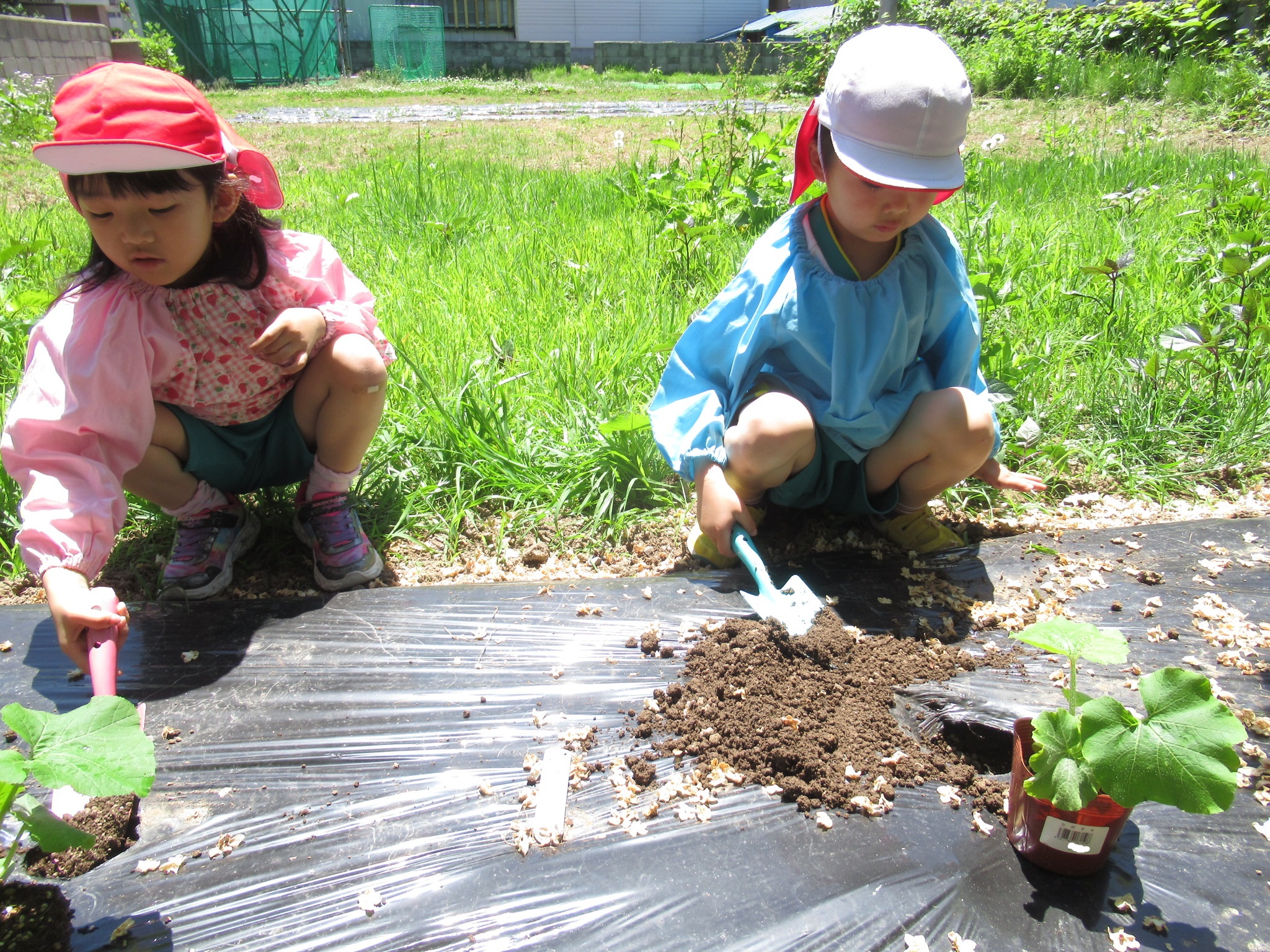 穴を掘るのが大変そうでしたが、がんばって植えていました。