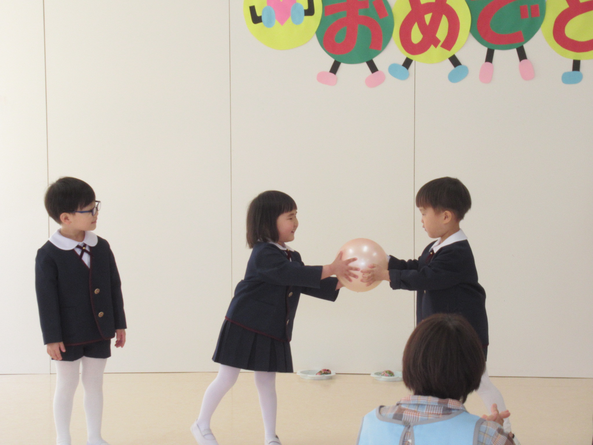 うさぎ組からの発表は、お手玉キャッチとボール渡しです。