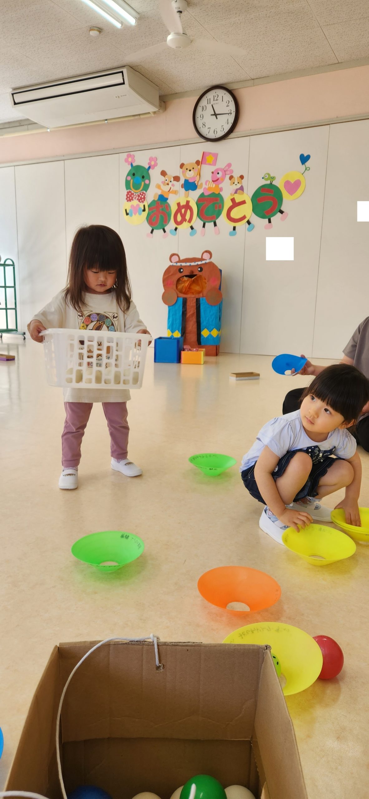 ボールを運んだり 箱の中に集めたりしました☆