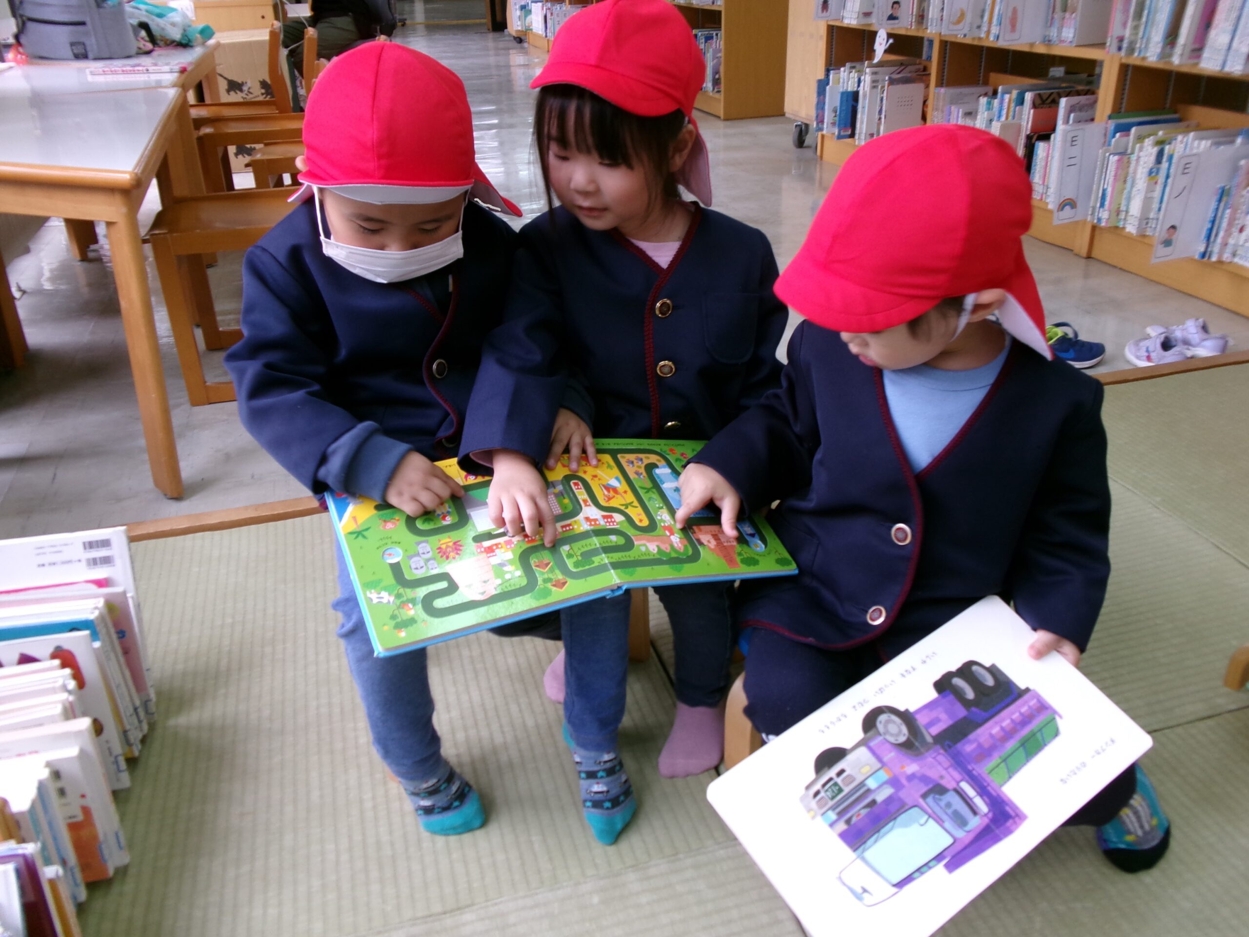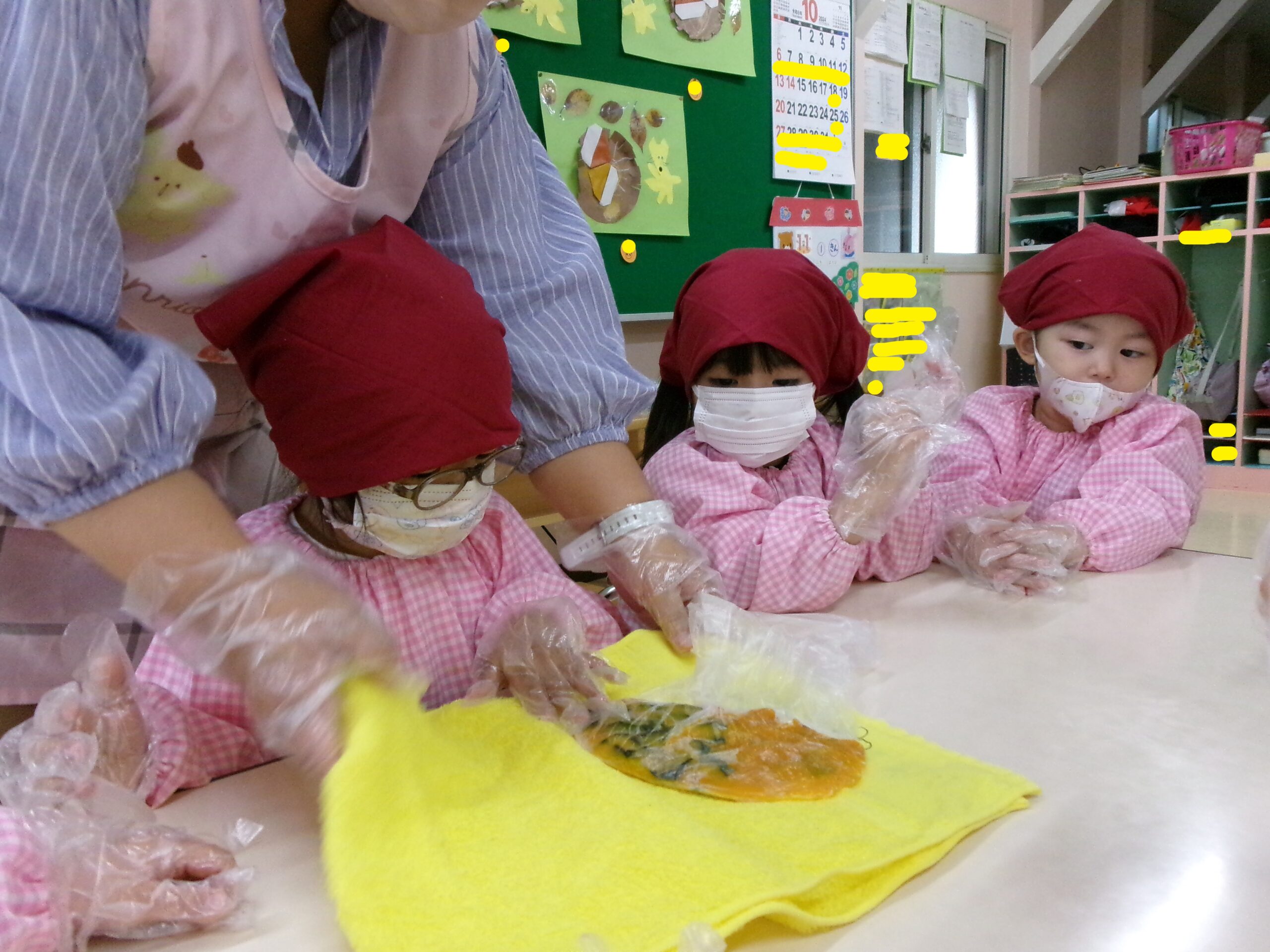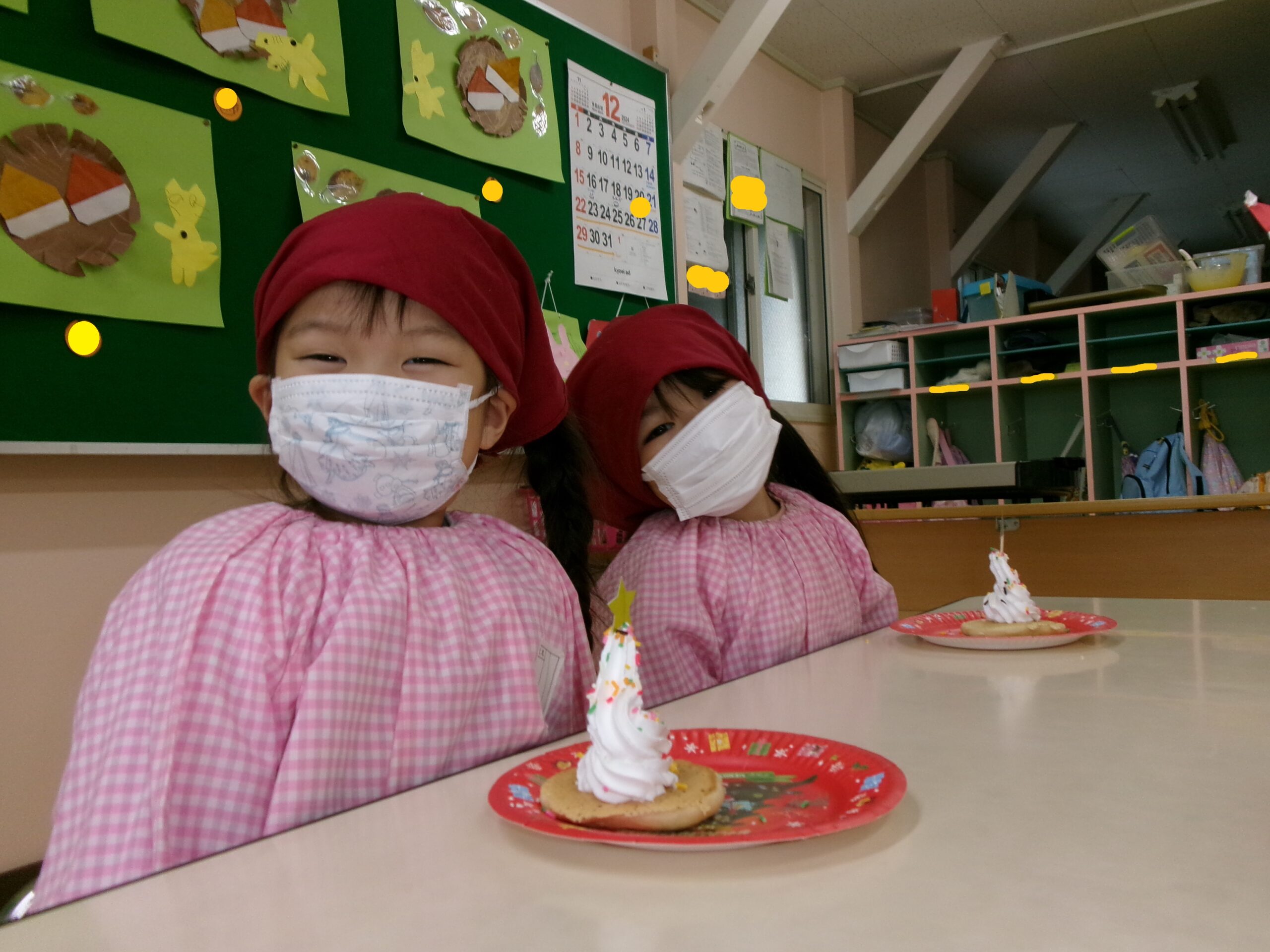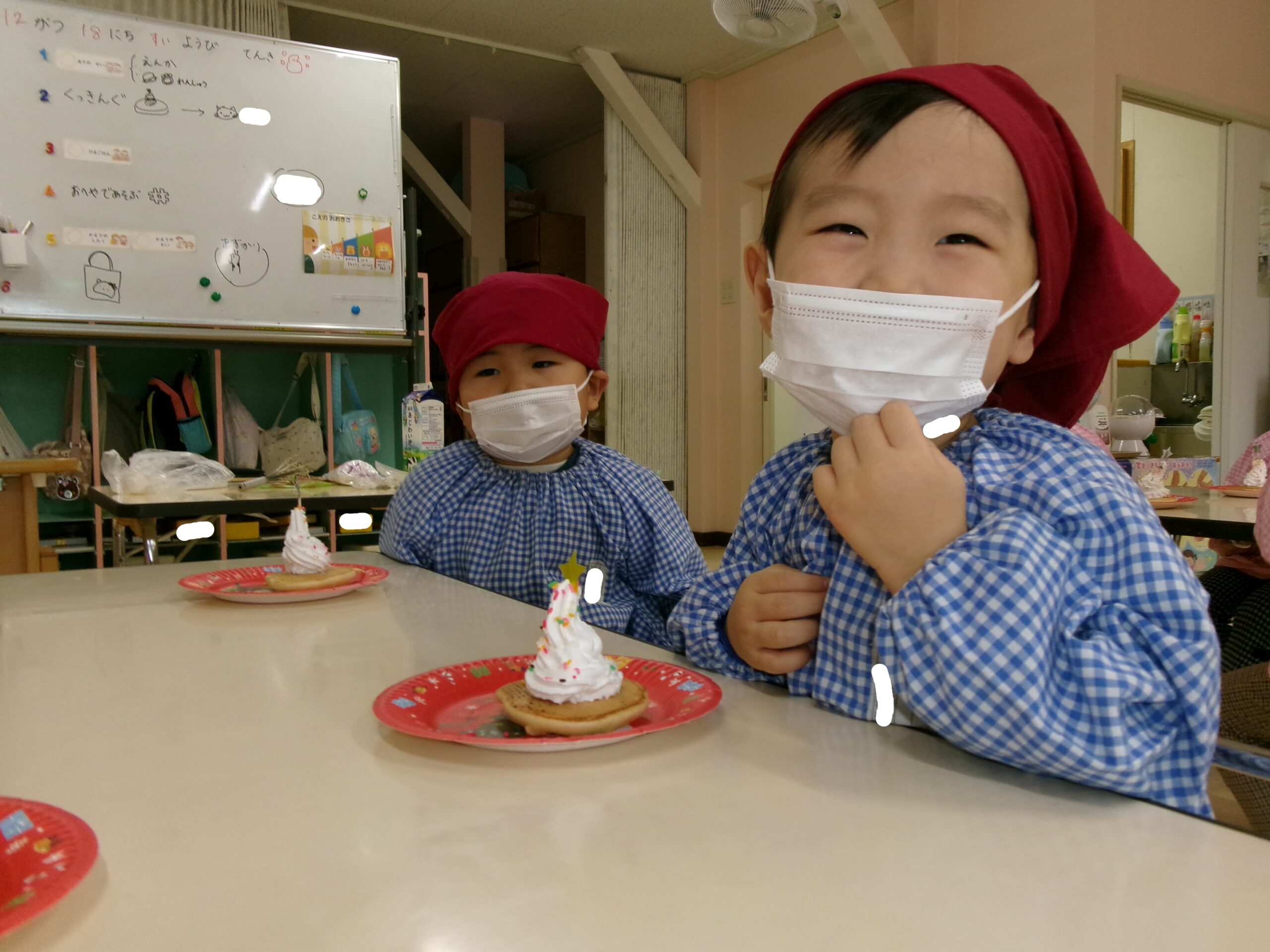 冬休みの楽しかった出来事を絵にかいたり、鬼のお面製作に取り組んだりと製作活動も頑張っています。
