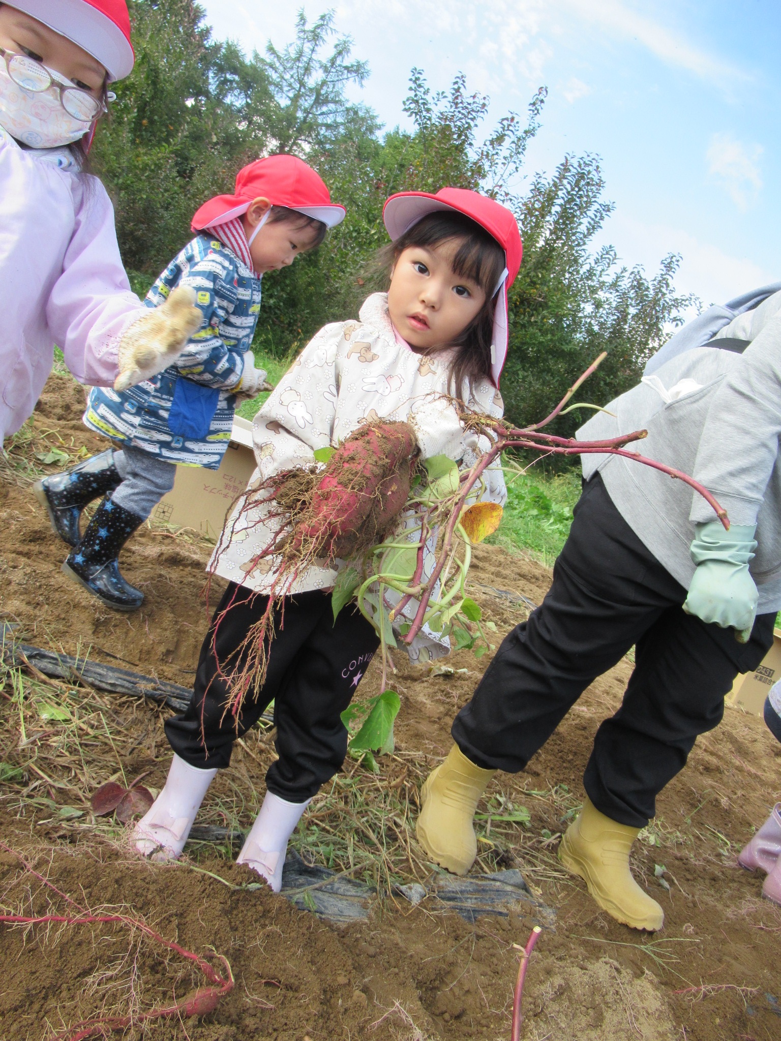 スコップを使って職人のように穴を掘っている子もいます。