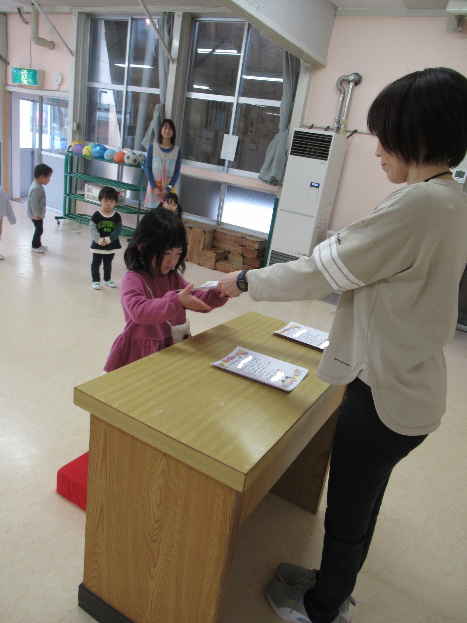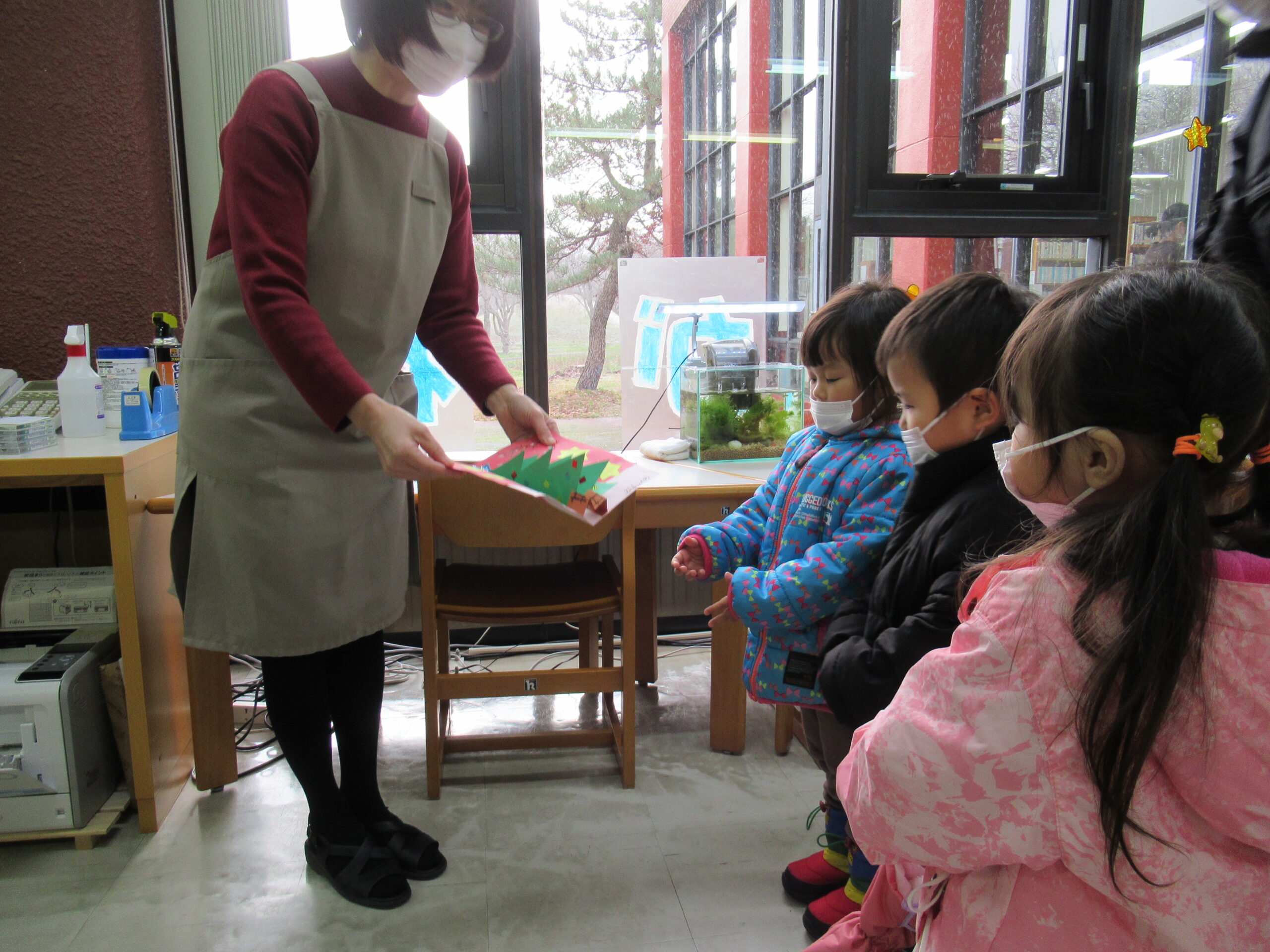 お部屋の大掃除(と言ってもひよこさんができる範囲で)をしました。学期最後の図書館へお出かけでは、日ごろお世話になっている図書館の方へクリスマスカードを届けたり、