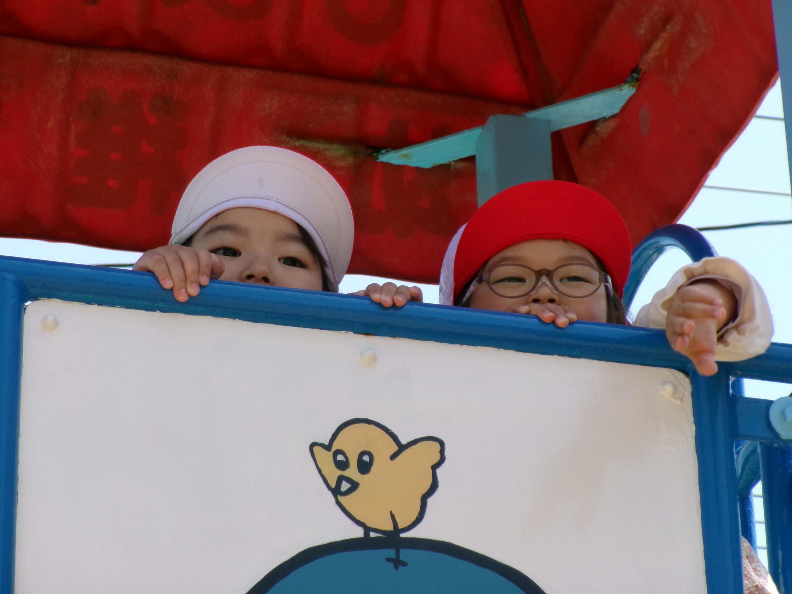 お遊戯は、曲に合わせる前にステップの仕方、クラップをする時の手の位置、脚の動かし方、顔や体の向き、縄跳び練習に積み木からの跳び方等、移動の仕方も含め覚えることがいっぱいでしたが、課題を少しずつクリアし、小さな積み重ねで初舞台を迎えた子ども達です。