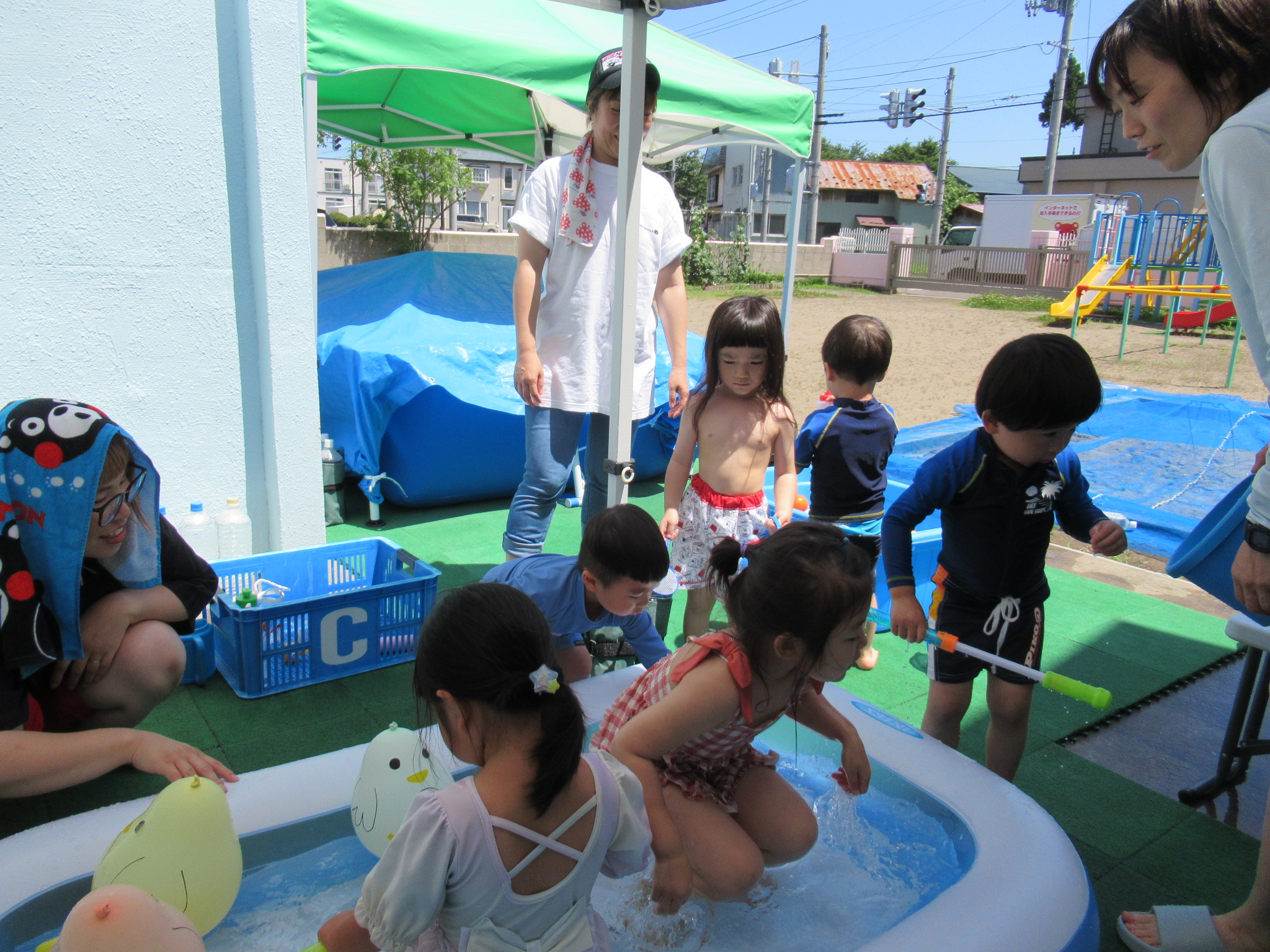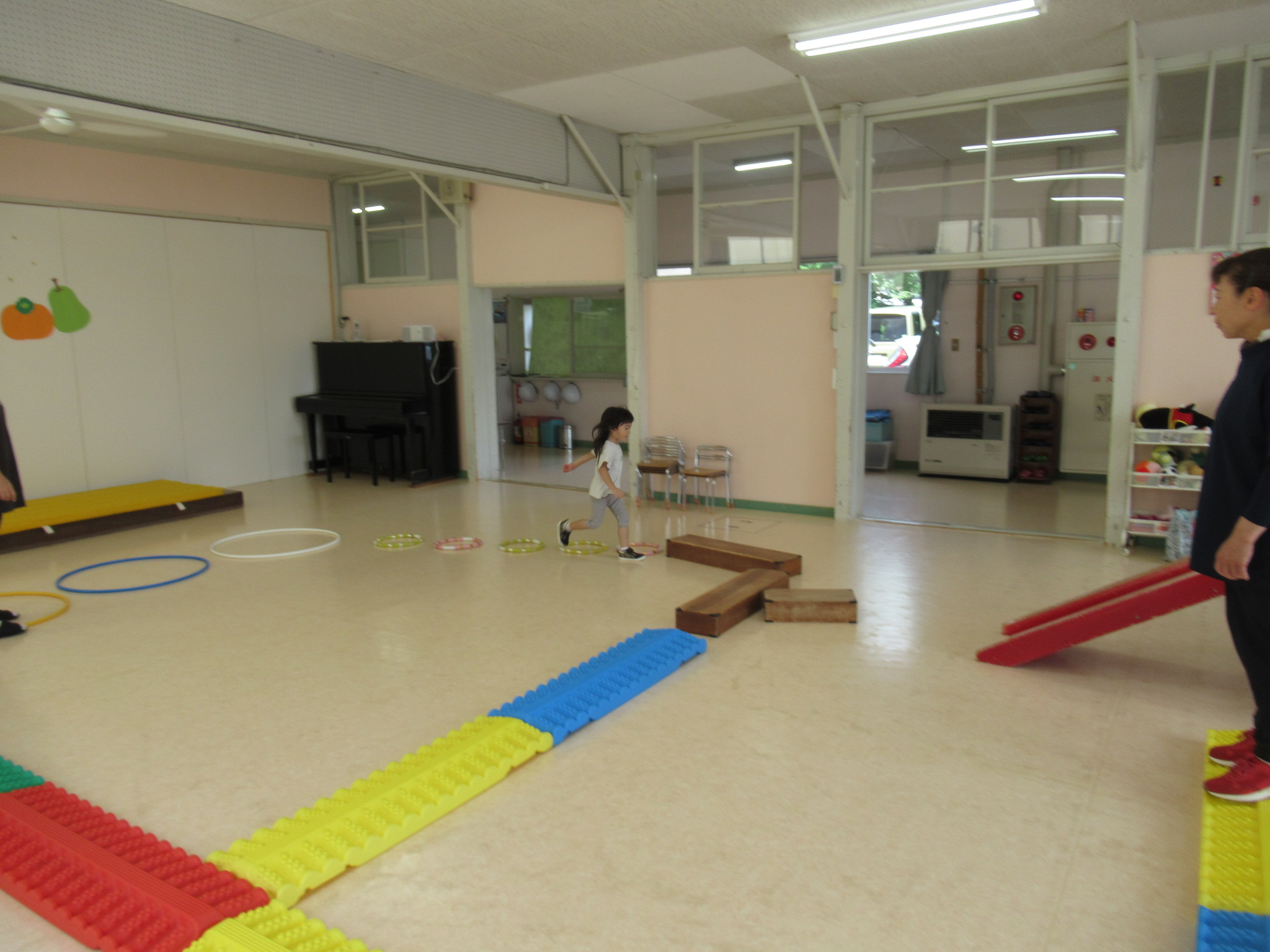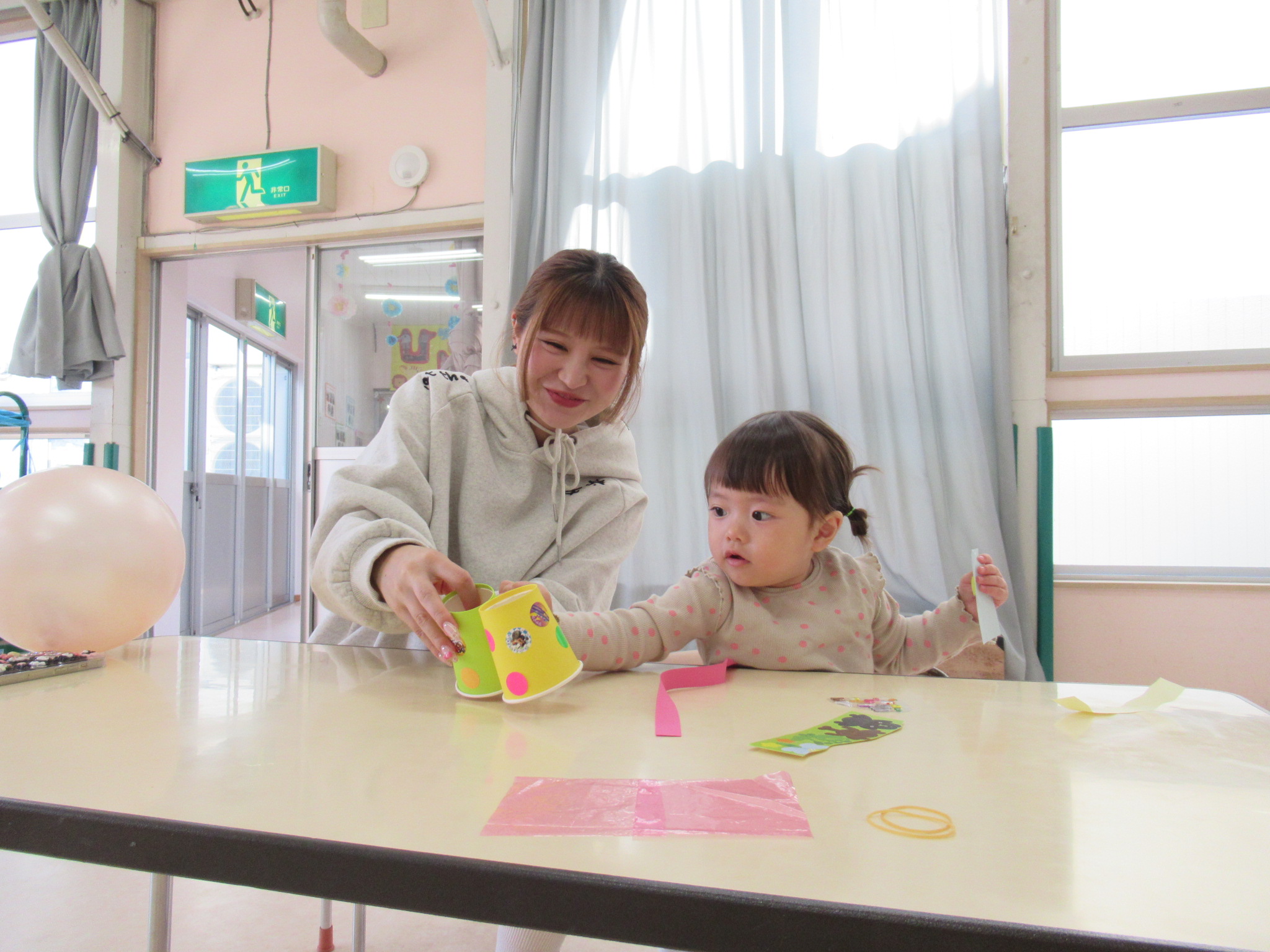 ひよこ組のお友だちと一緒にハイ・ホーの曲に合わせてリズム遊び! 色々な楽器の音が混ざり合って、素敵な演奏になりました♬
