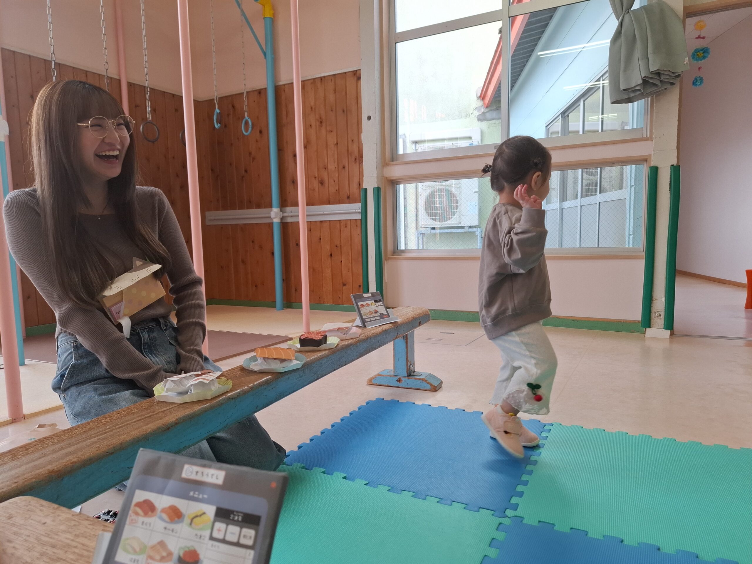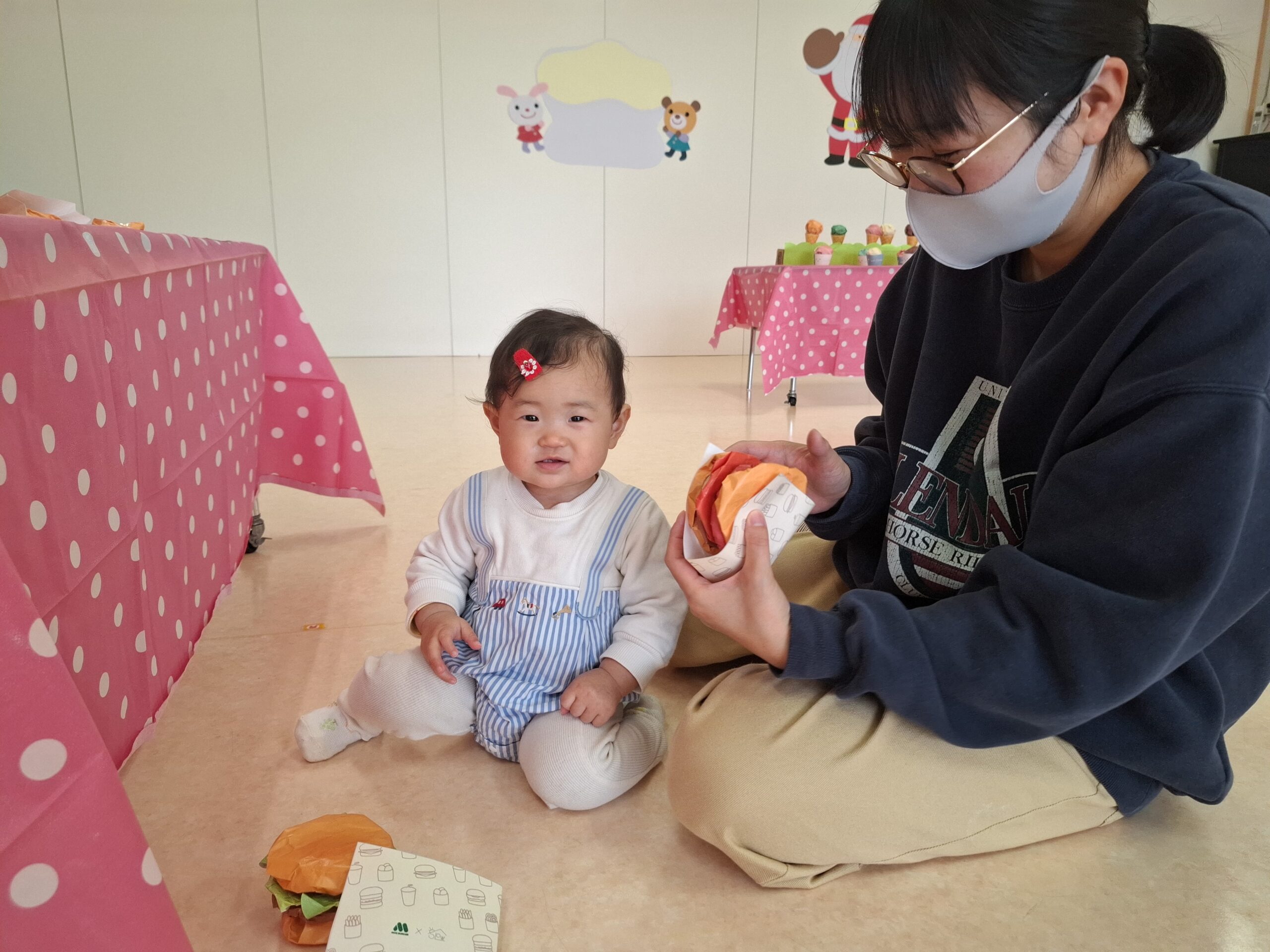 幼稚園のお友だちみんなとプレゼント交換をして楽しみました!ジングルベルの歌を歌いながら椅子の周りを歩き、「ヘイ!」の掛け声で止まったところのクリスマスカードとプレゼントをゲットすることができます🎁