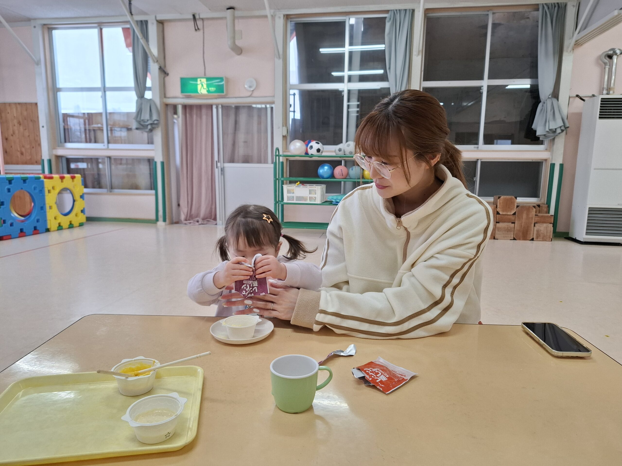プレゼントの中にはお菓子が入っていたので、好きなお菓子を1つ選んでみんなで一緒に「いただきまーす」