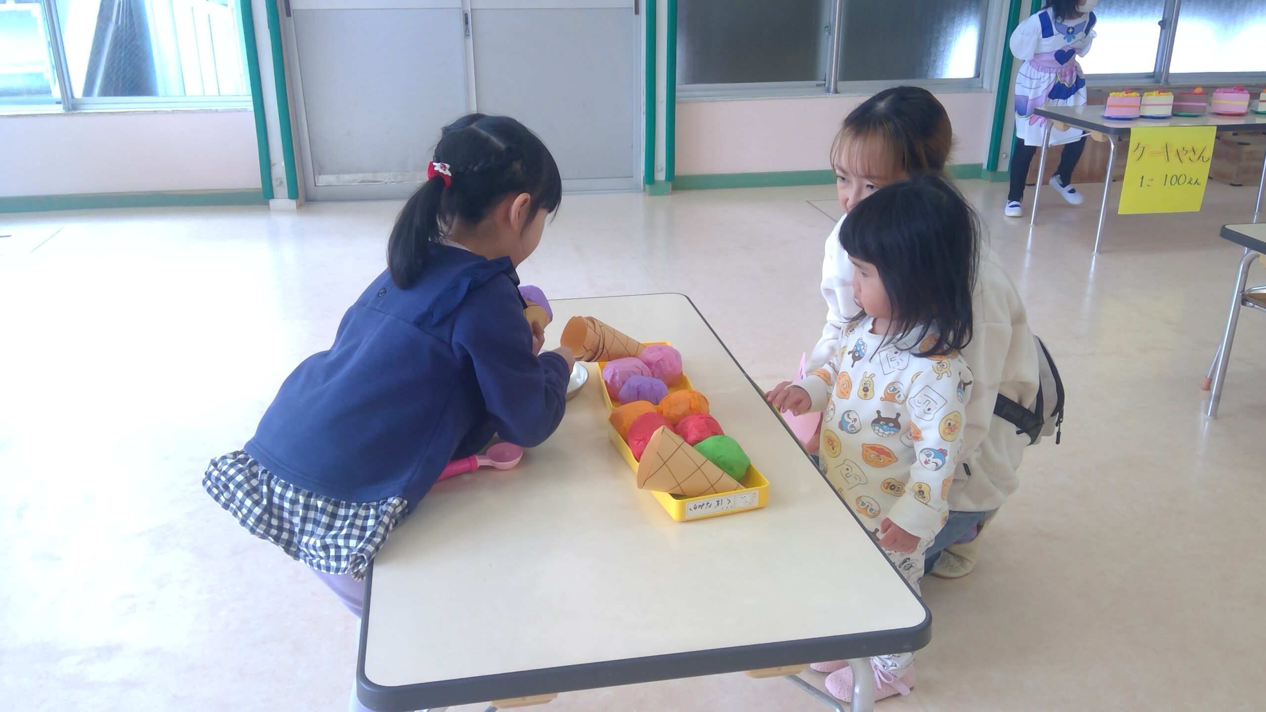 ①おみせやさんごっこ ②絵本の読み聞かせ ③給食体験 を楽しみました!!