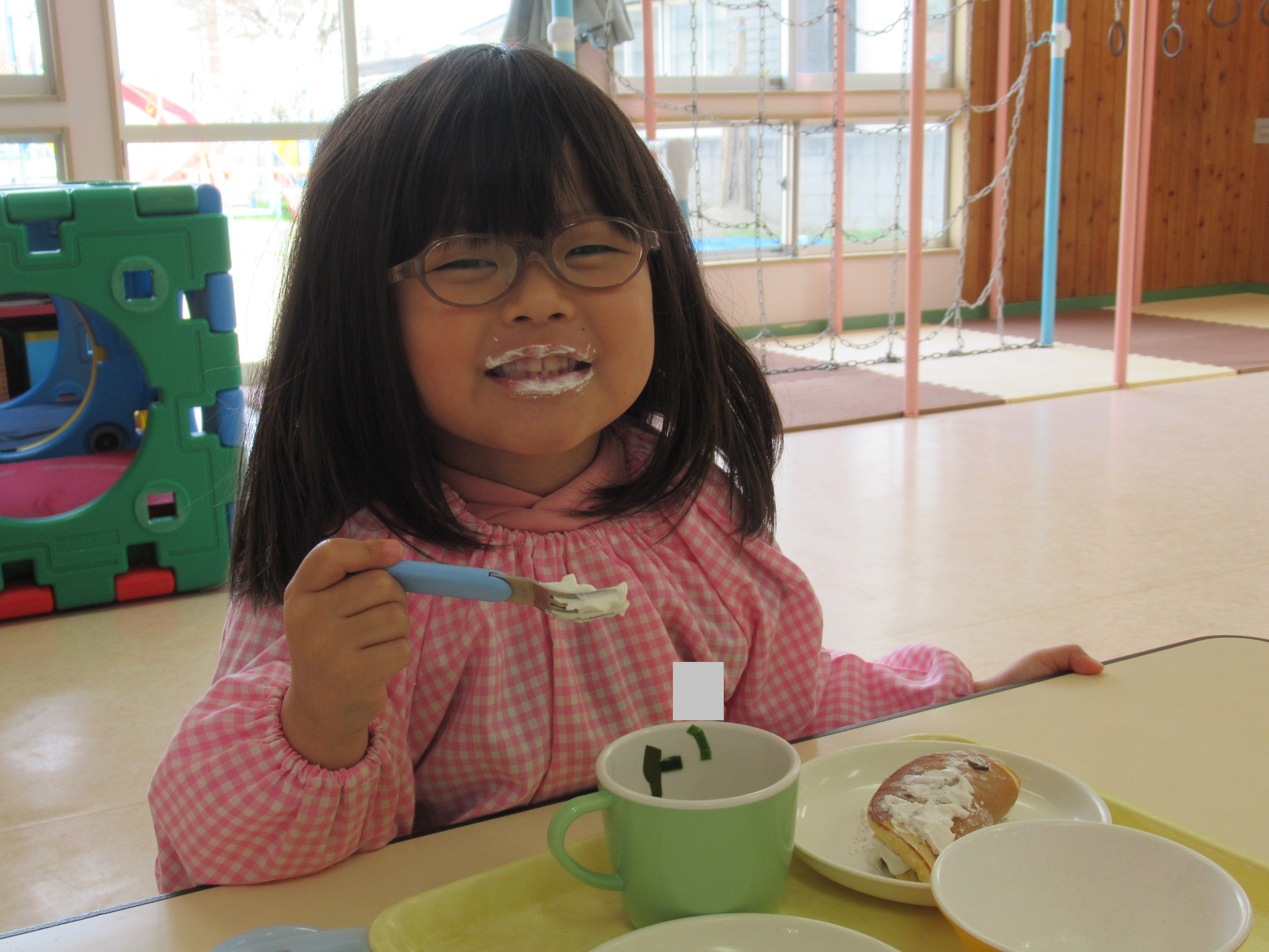 写真は、お弁当を食べてからおやつを食べているところです。