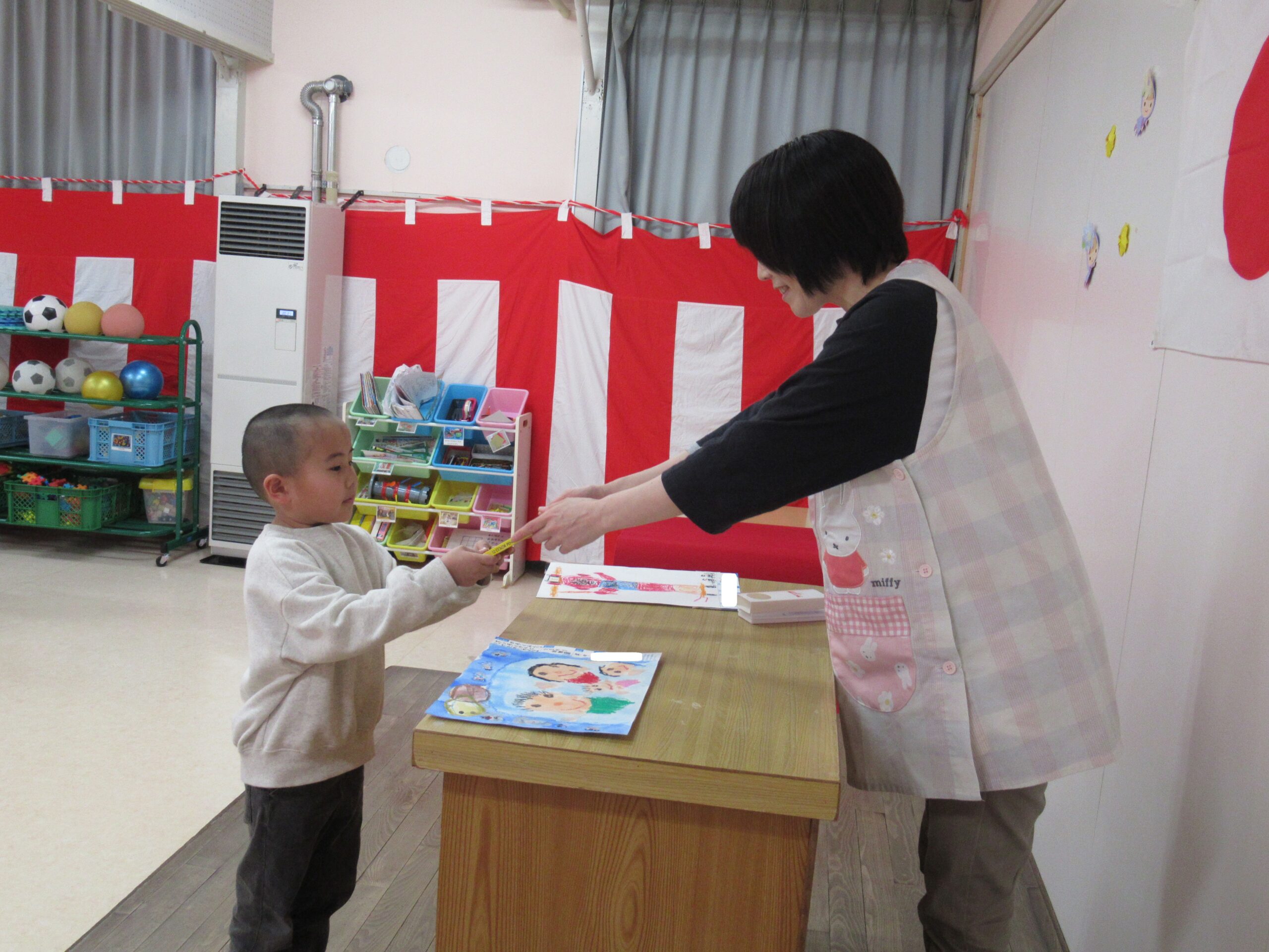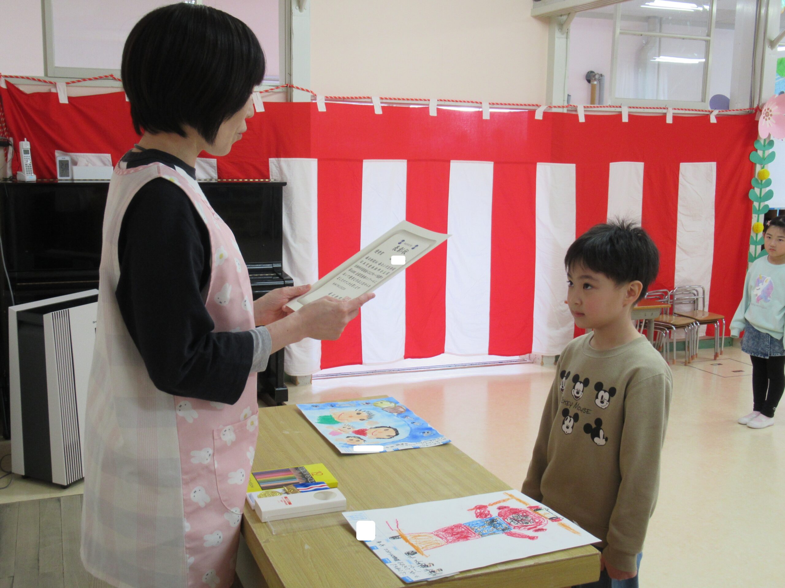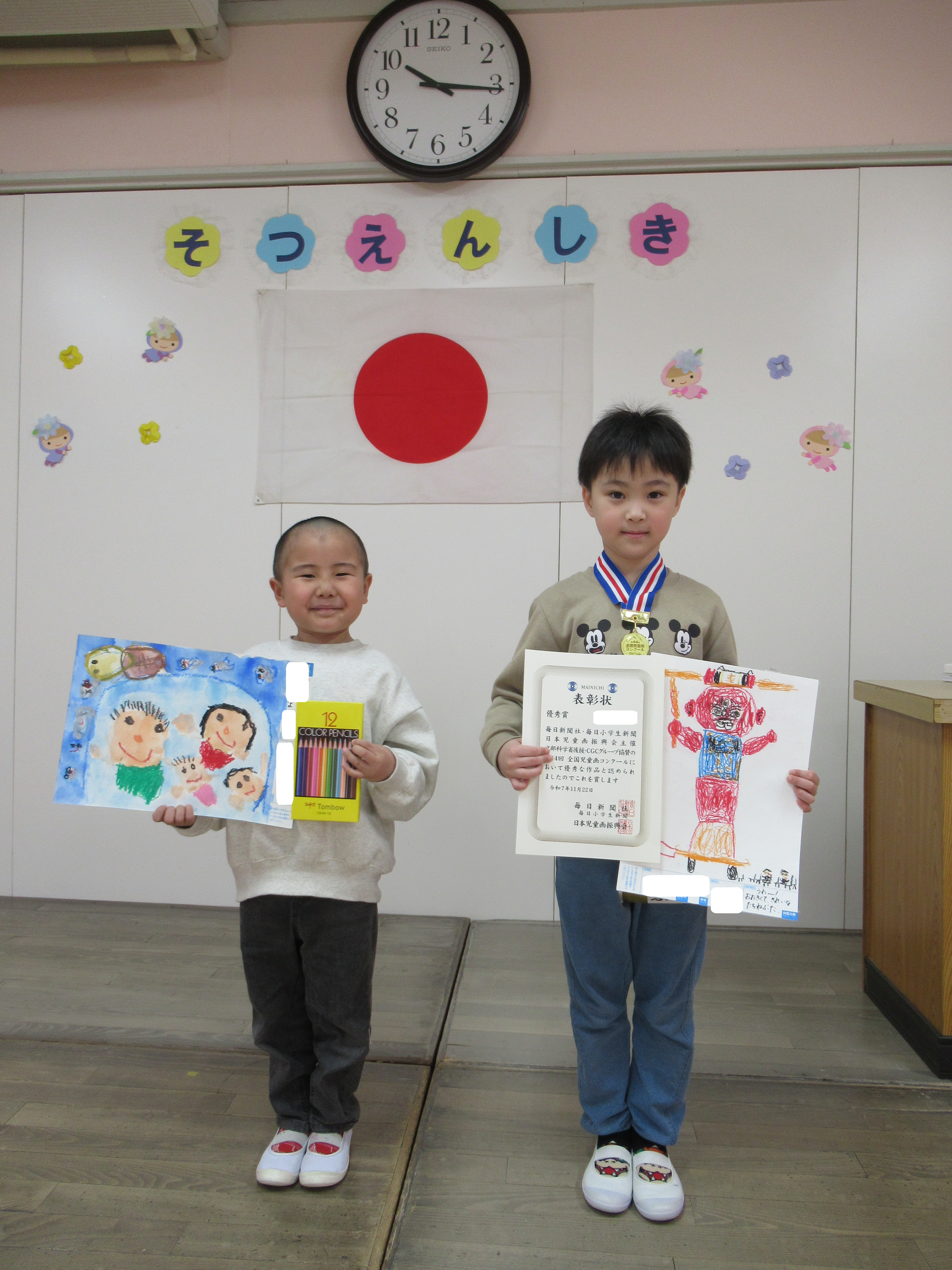 園長先生から賞状と賞品の自由画帳が手渡され、とても嬉しそうでしたよ😊