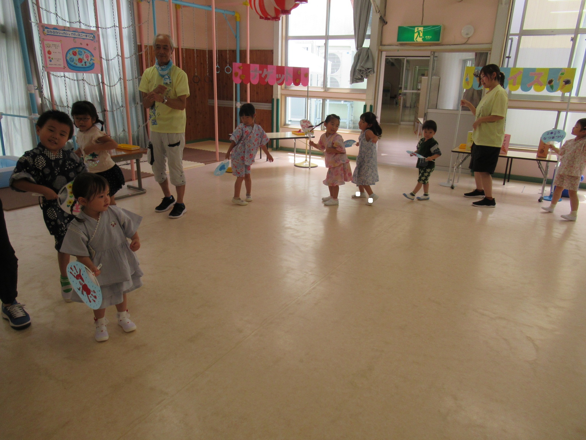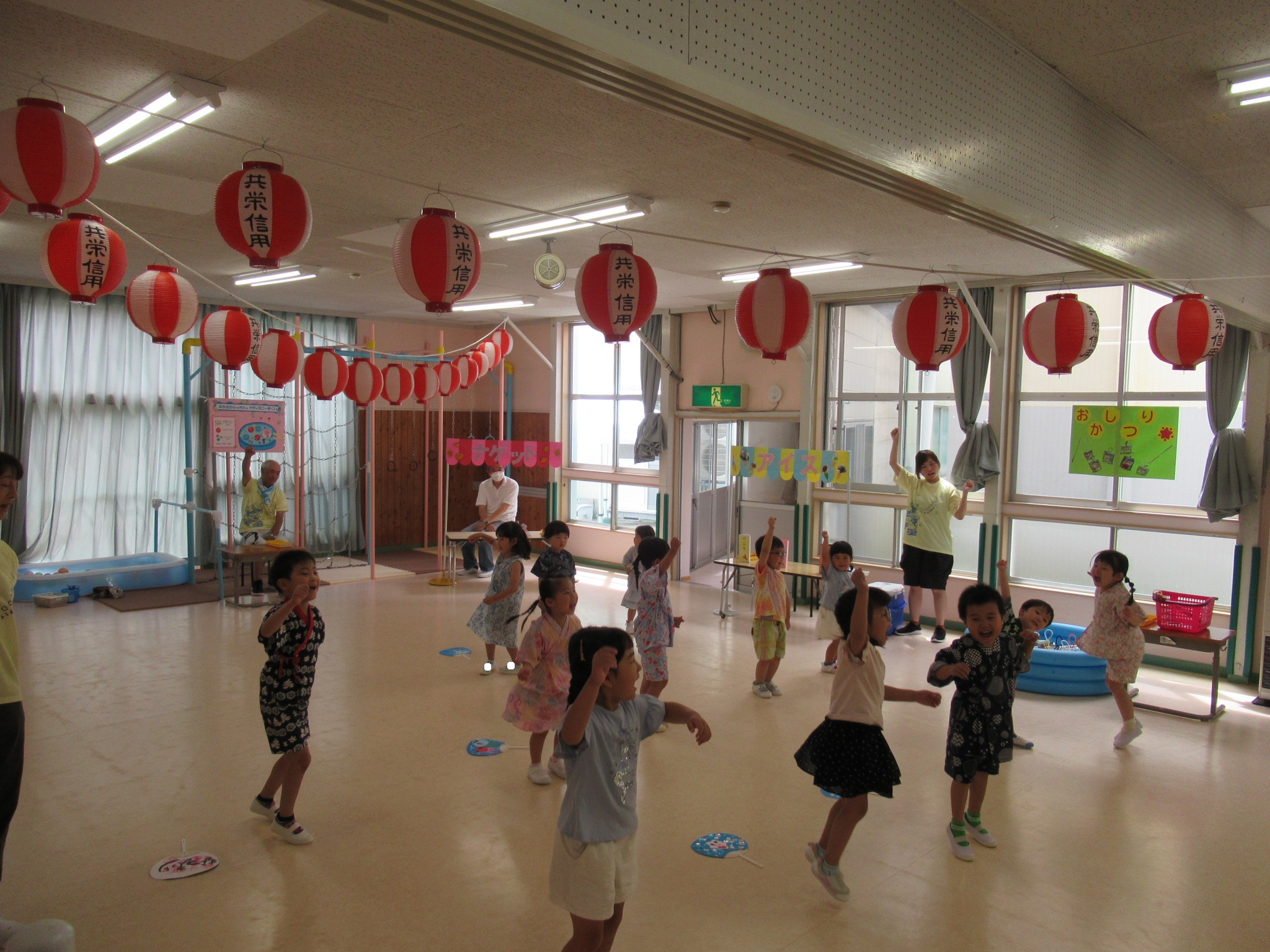 はと組さんの司会に合わせて、 「夏祭りスタート」の掛け声とともに待ちに待った夏祭りが始まりました!