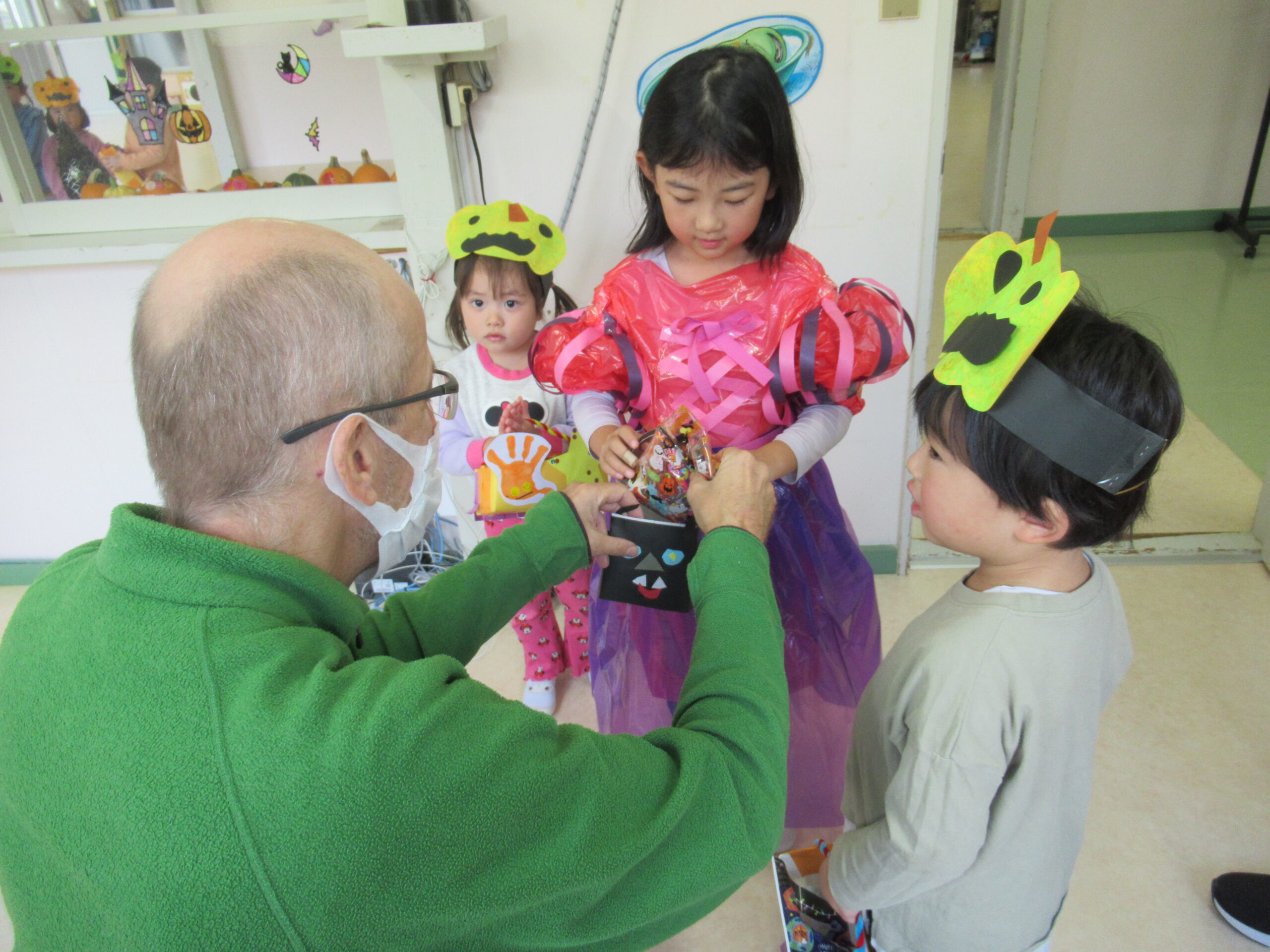 みんなでハロウィンを楽しむことができました。お菓子をプレゼントしてくれたマーク先生、キルト部のお姉さん、かぼちゃを持ってきてくれた園医の先生、おいしい給食をつくってくれた調理の先生・・・ありがとう💛