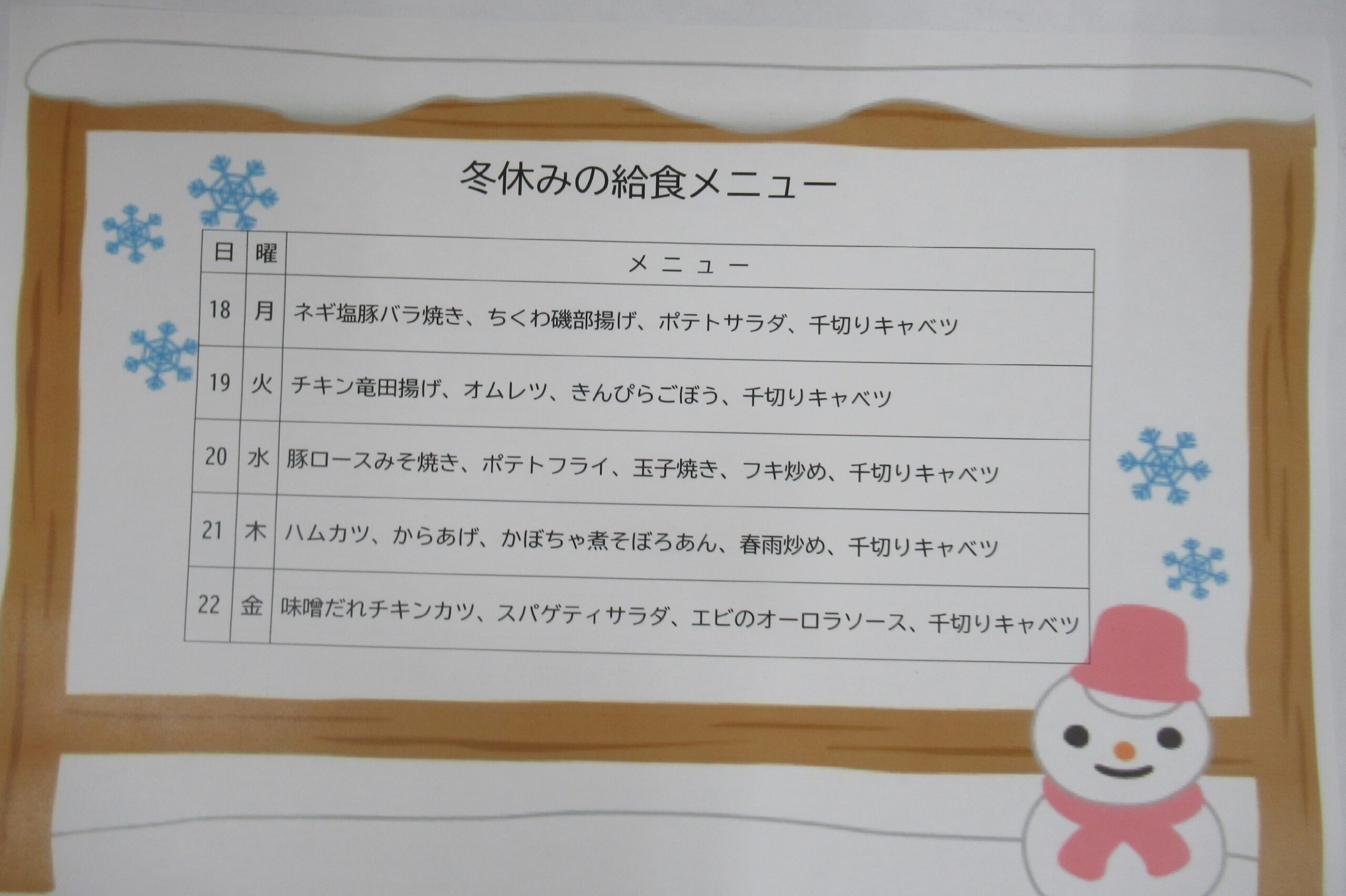 冬休み中の給食メニューはこちら↓