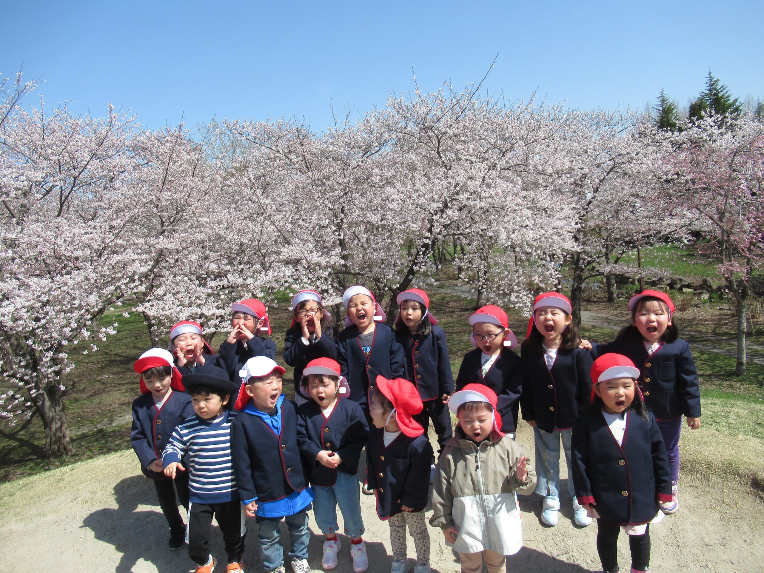 先日は全園児で菊ヶ丘運動公園に出掛けてきました🚌 満開の桜がとってもきれいでした🌸