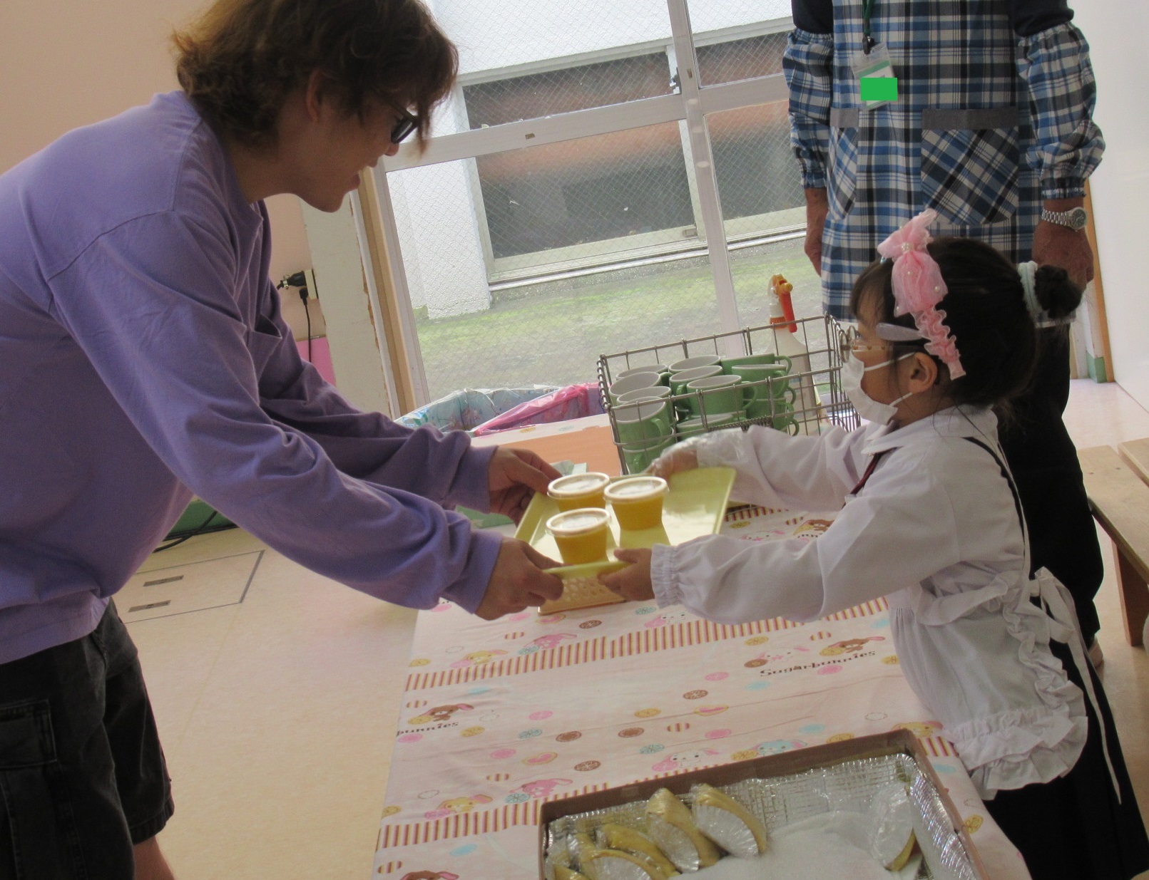 キッズカフェではお客さんに笑顔で、「いらっしゃいませ!」「はいどうぞ!ありがとうございました💗」と対応することができました。