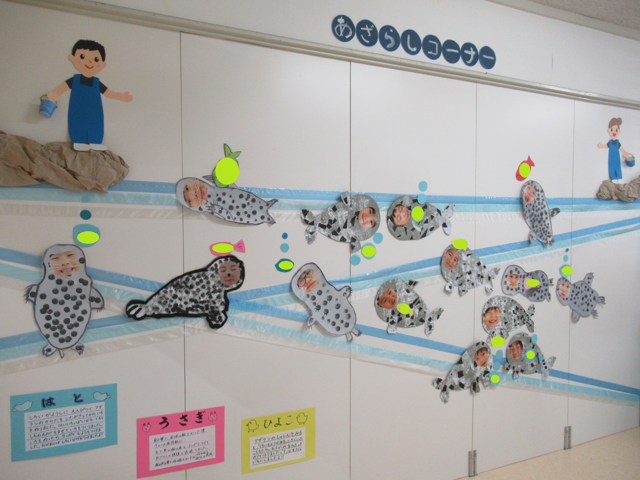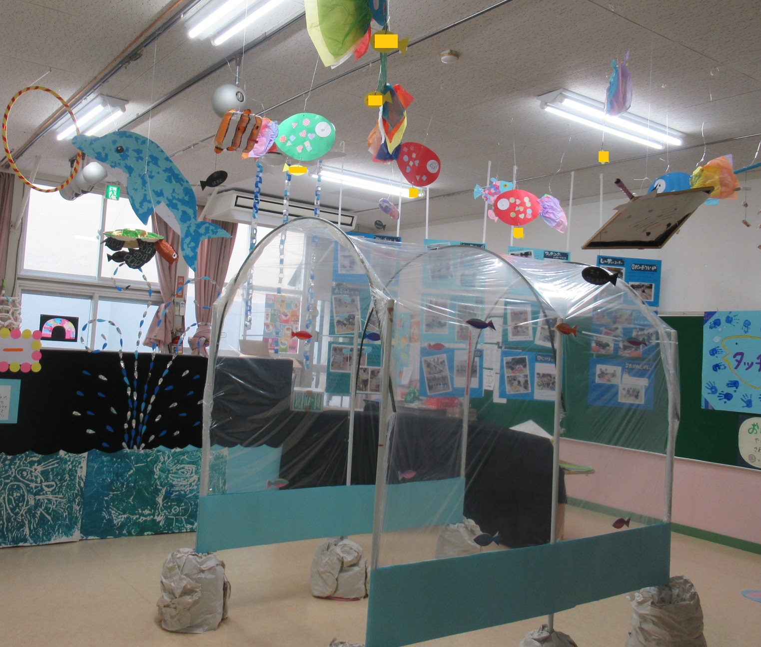 おともだちや先生と力をあわせて作った「ひまわりすいぞくかん」は、こどもたちの笑顔やアイディアがたくさんつまっています。